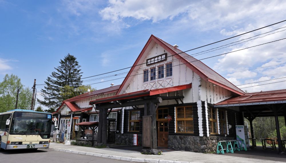 The log-house construction makes it "one of the most beautiful stations in Hokkaido," says photo essayist Yukiyasu Sugizaki.