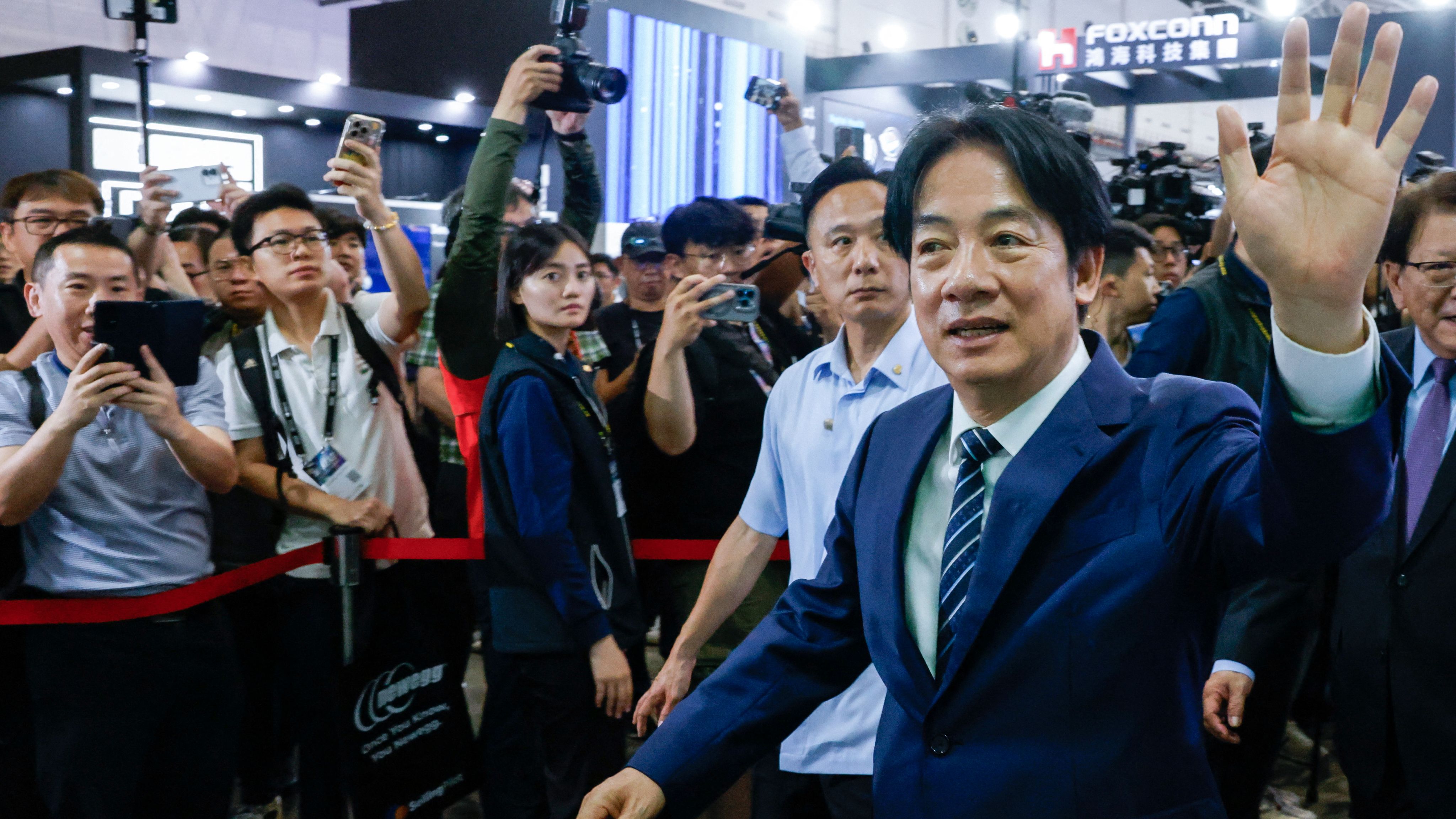 President Lai greets the crowd at Computex in Taipei on May 20. (Photo by Ann Wang/Reuters)