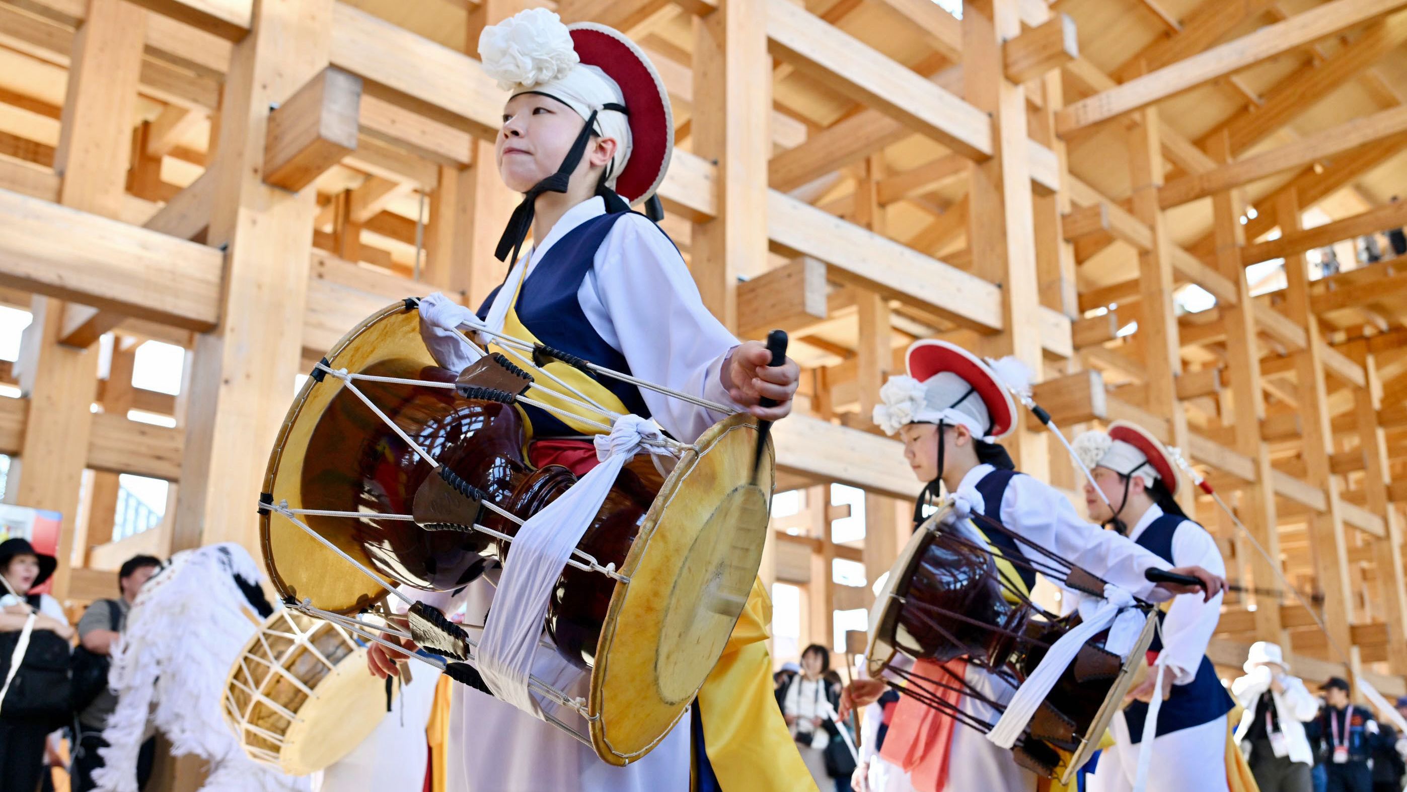 A parade is held at the World Exposition in Osaka on May 13, marking the event's South Korean day. (Photo by Yo Inoue)