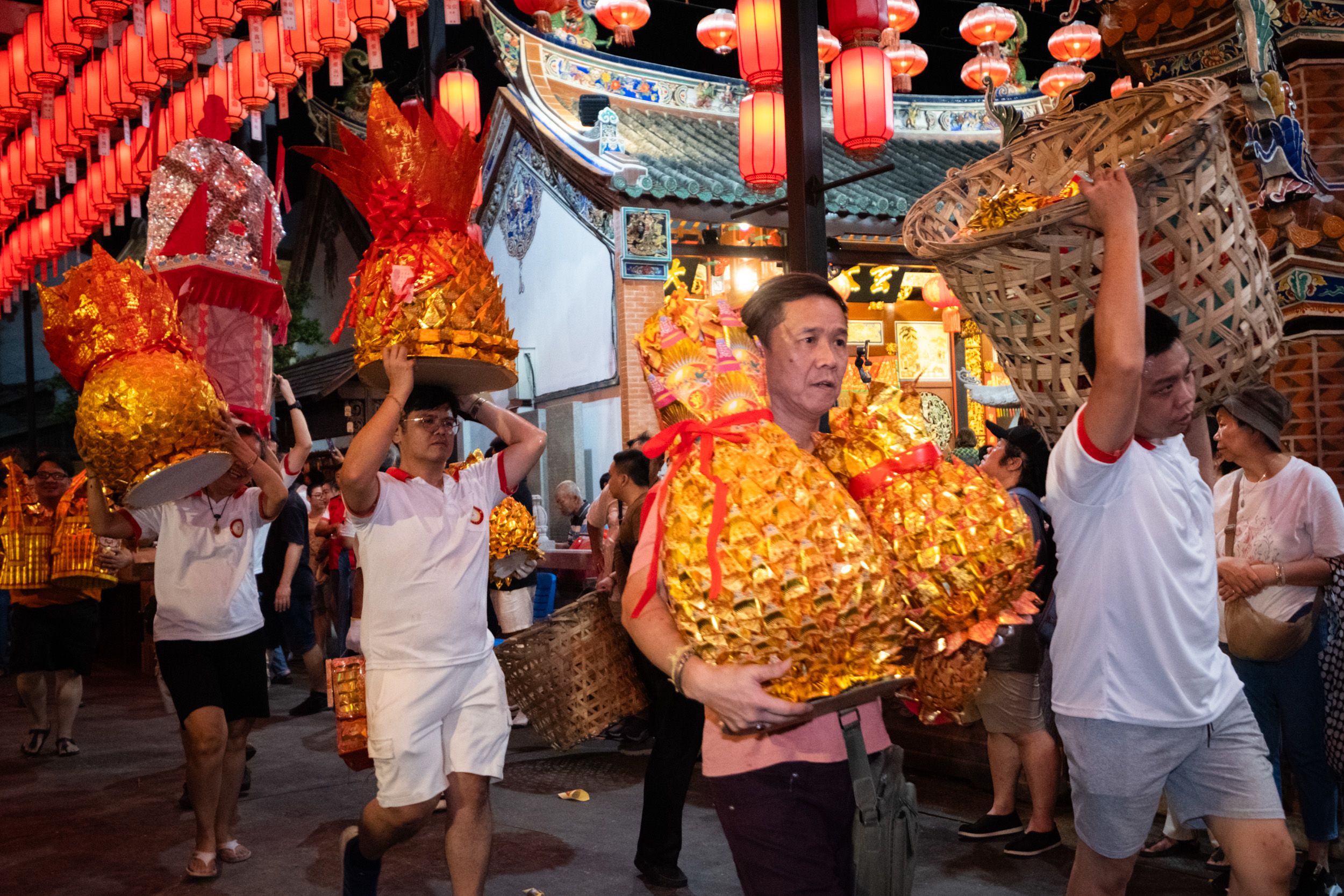 In Bukit Mertajam, worshippers proudly carry paper effigies to the pyre, believing the act brings blessings. Among the offerings are paper pineapples, their Hokkien name “ong lai” sounding like the phrase “prosperity will come.”