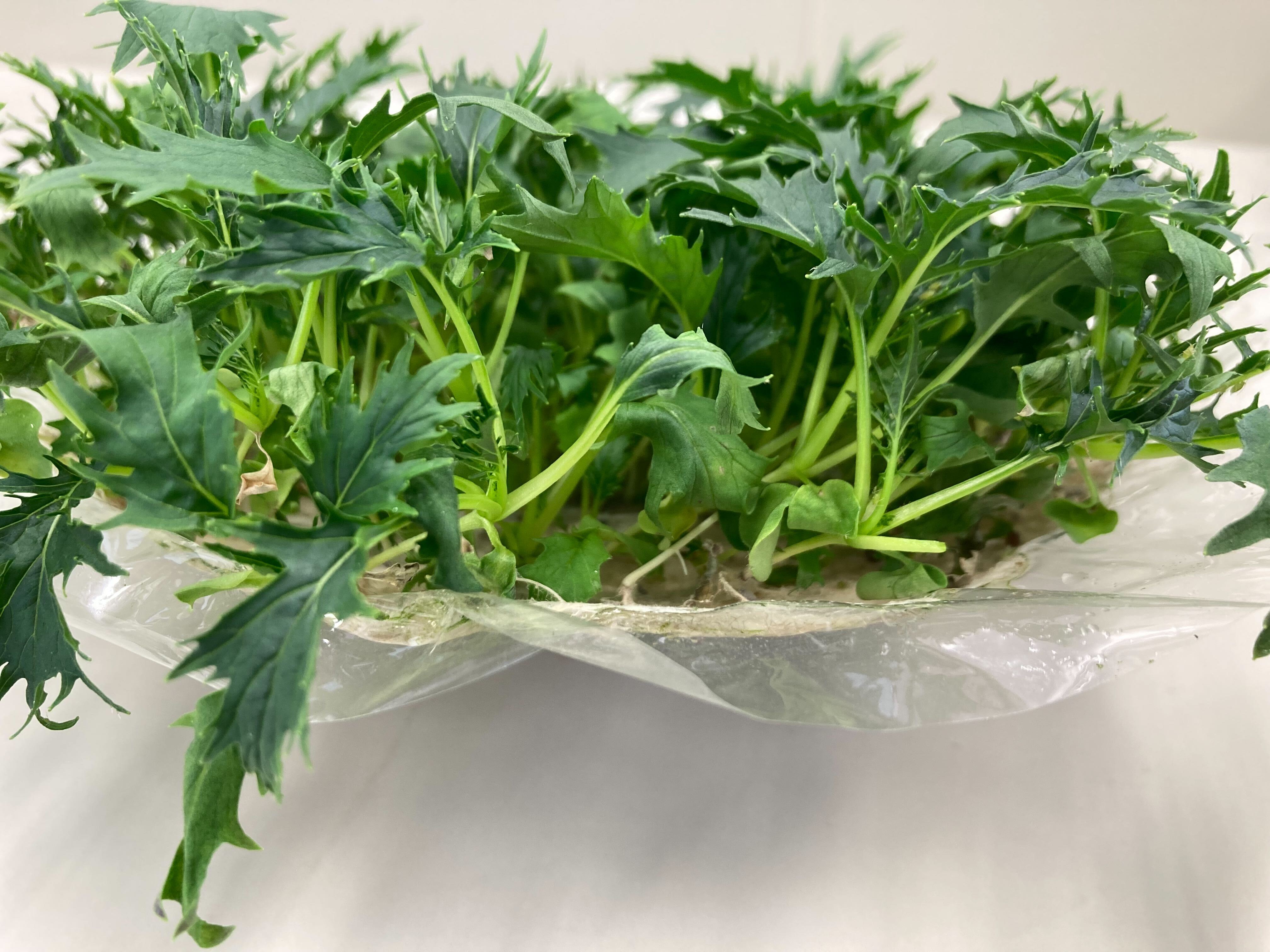 Mebiol’s invention looks like hairy grass sprouting from a huge sheet of plastic wrap. It’s a mix of nutrients and water in a hydrogel, which is then flattened into sheets fertile enough to sustain plants.