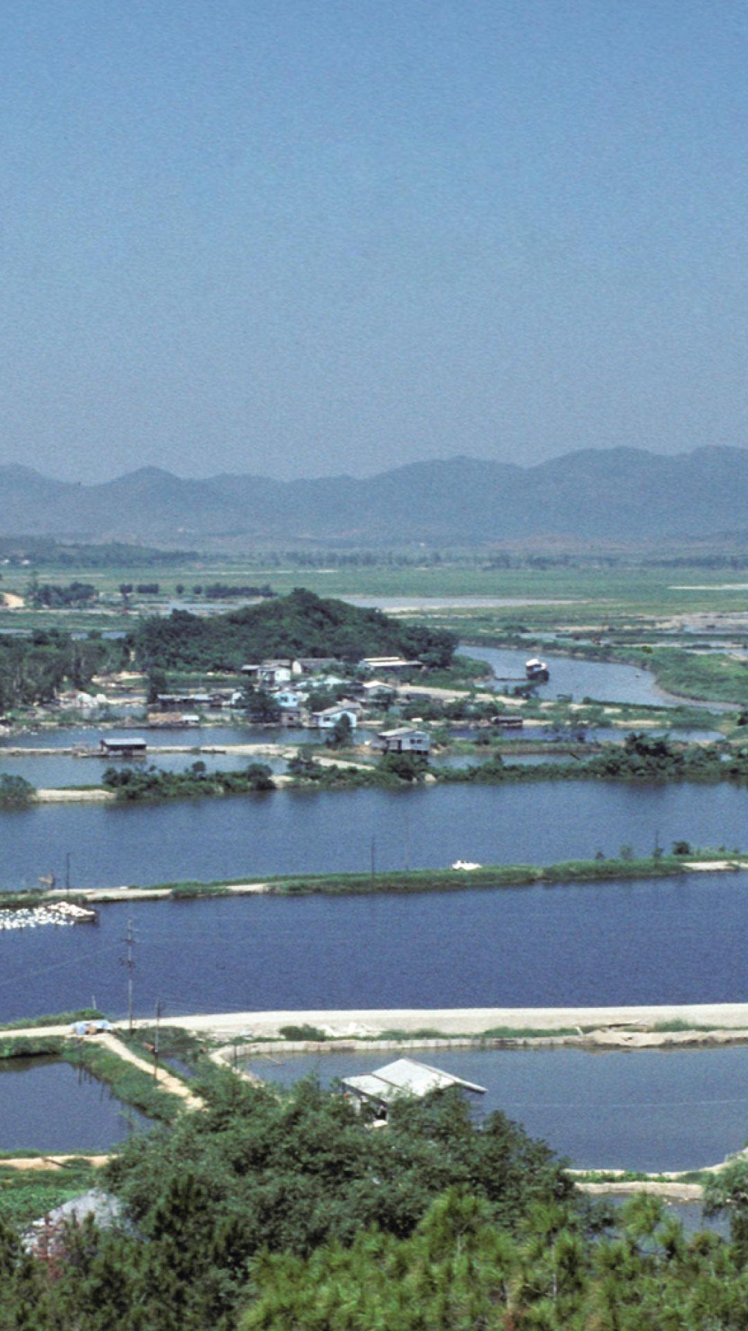 For most of its colonial history, Hong Kong was an enclave of wealth and status surrounded by the poor rural farmland and fishing villages of southern China. This photo shows the rural landscape of Lok Ma Chau, northern Hong Kong, in 1979.