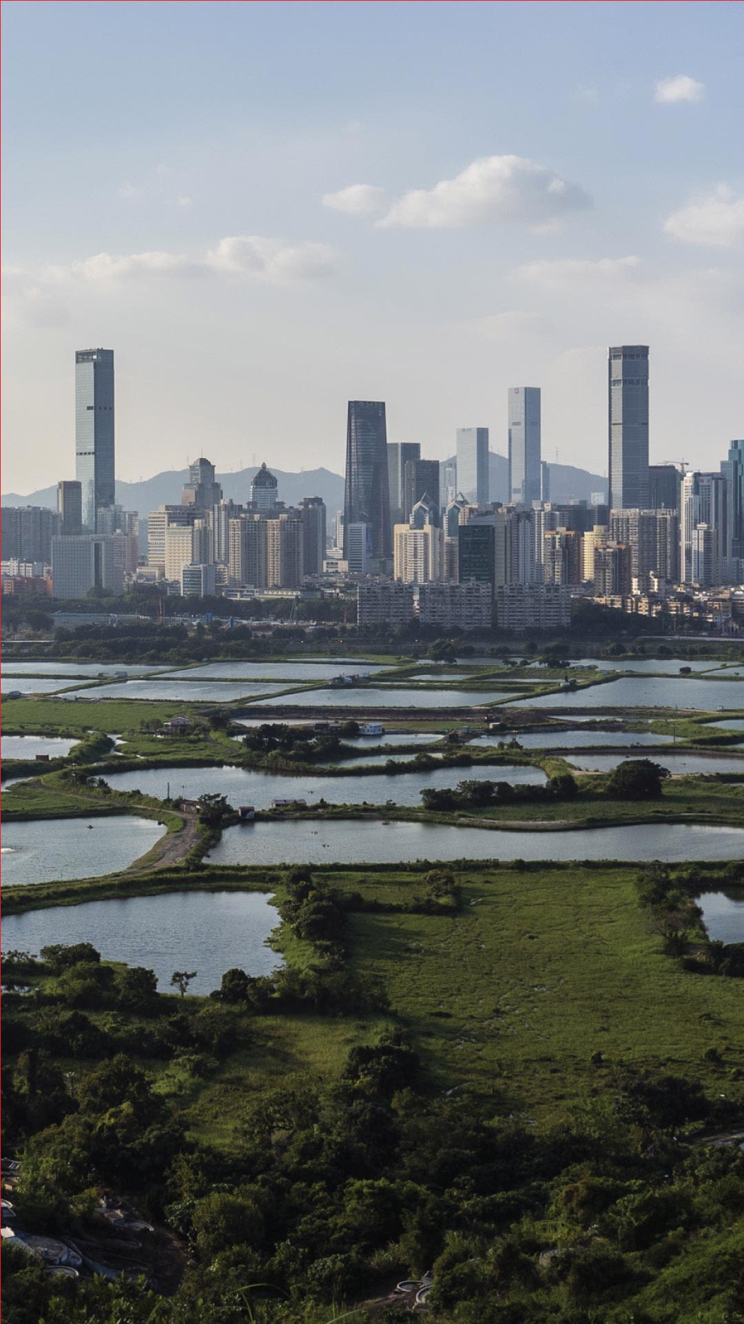 Farmland in the Lok Ma Chau Loop area of Hong Kong (seen here with Shenzhen on the horizon) will disappear under proposed plans for the Northern Metropolis. (© Getty Images)