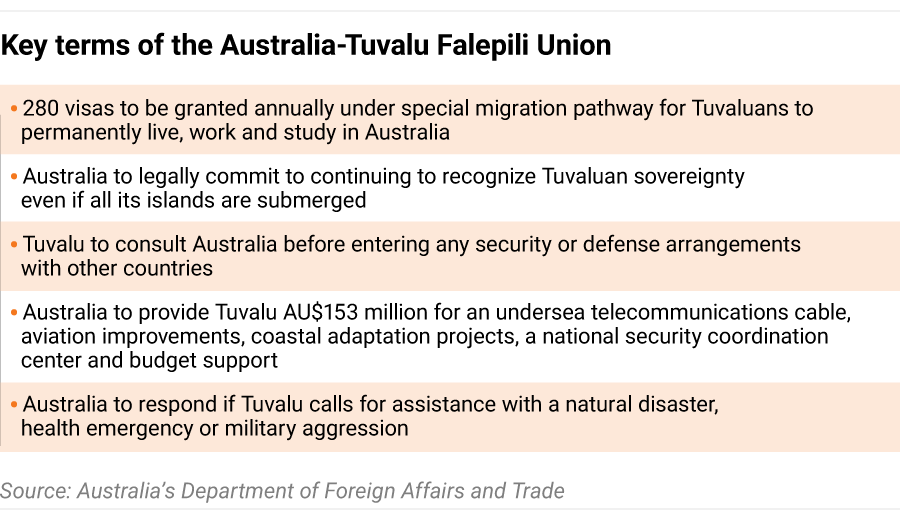 As a result, Stephen Howes, director of the Development Policy Centre at Australian National University in Canberra, said that in respect of the Falepili Union, “The real driver for Australia is security.”