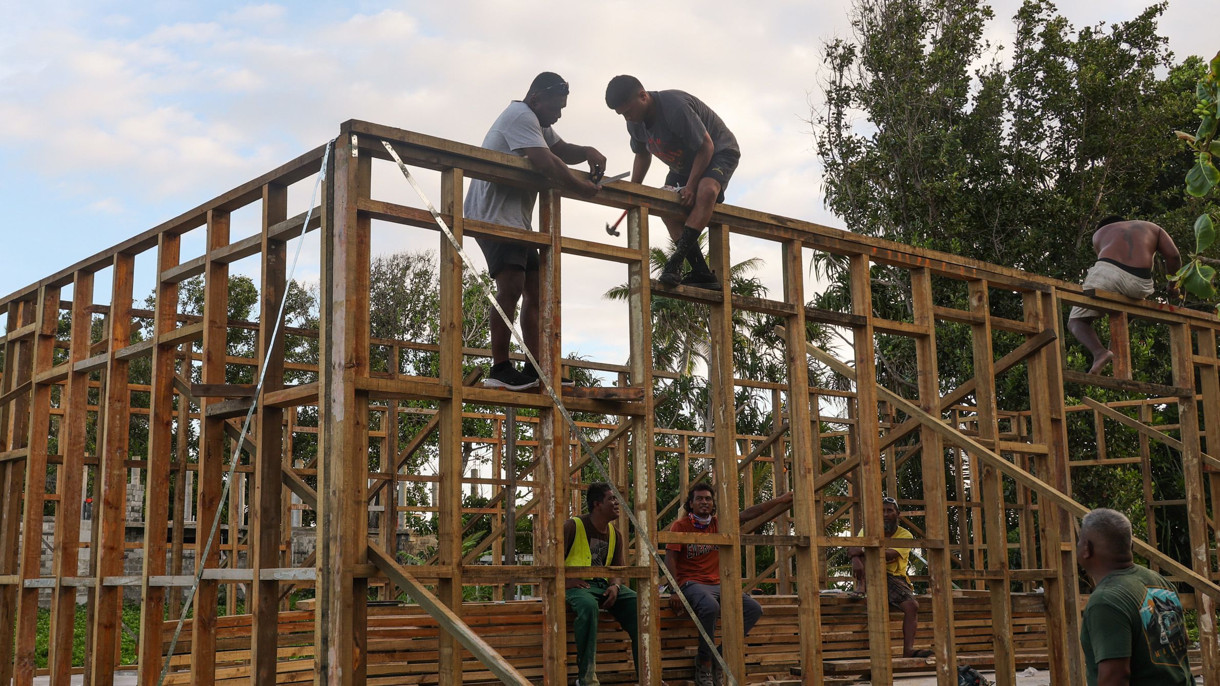 The emigration of young able-bodied workers could impact homebuilding and other labor-intensive activities in Tuvalu. (Photo by Ken Kobayashi)