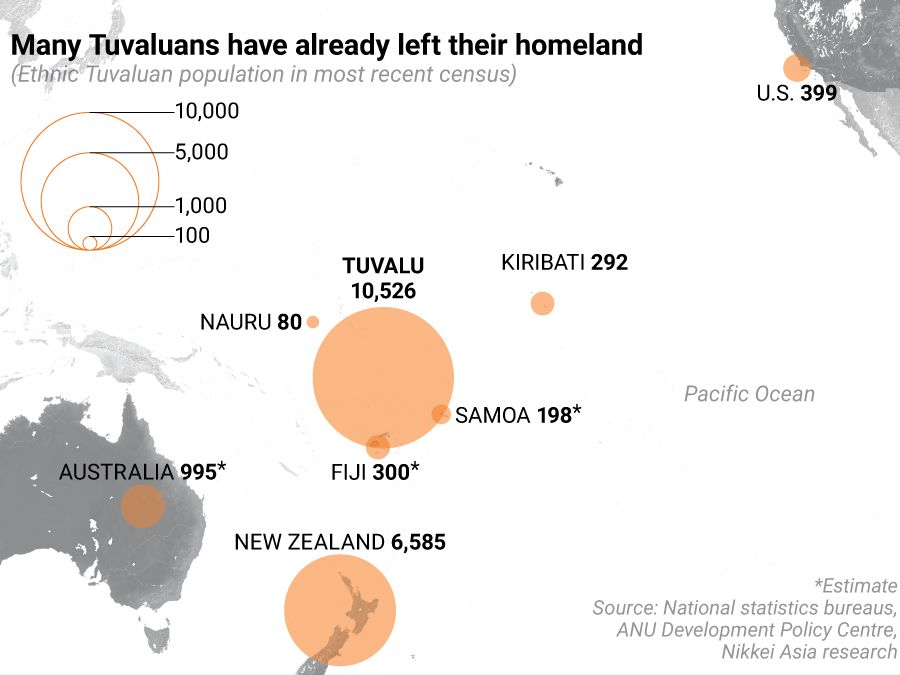 The country’s vulnerability to flooding and its lack of land-based resources have long caused Tuvaluans to try their luck elsewhere.