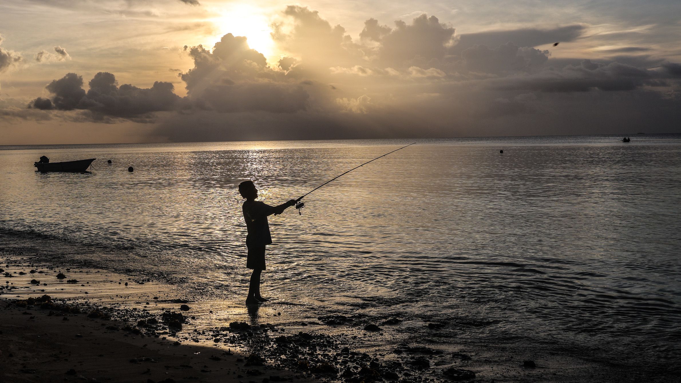 Sunset in Tuvalu: Hundreds of islanders have left to work as seamen and fisherman on foreign ships. (Photo by Ken Kobayashi)