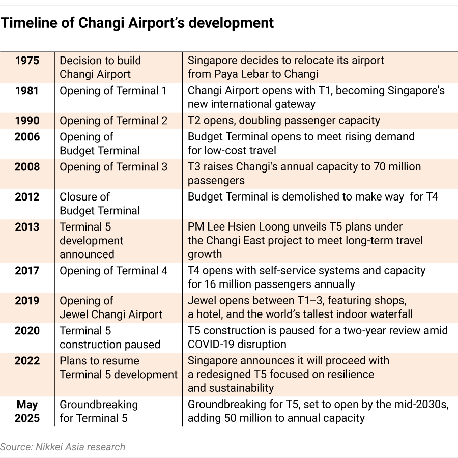 The total cost of Terminal 5 has not been disclosed, but officials estimate the wider Changi East development will require “tens of billions” of Singapore dollars. Final costs will depend on upcoming tenders, including the main terminal construction package expected next year.