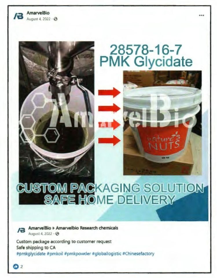 Amarvel sold chemicals on several specialty e-commerce sites. Website and social media histories show evidence that at least 10 individuals were involved in sales. They worked in English, Spanish and other languages to promote their fentanyl precursors.