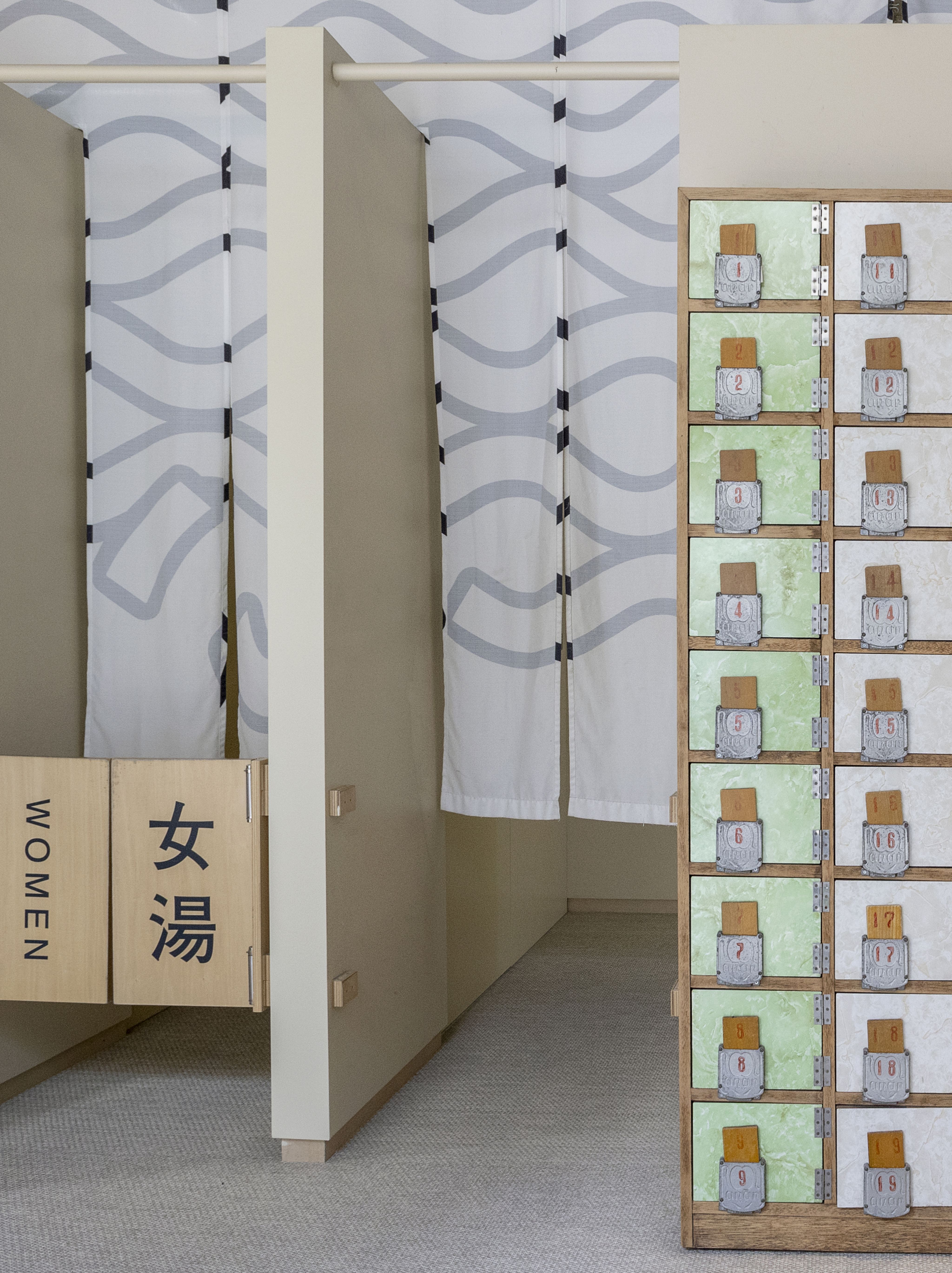 No fancy baths here, just three tubs -- one warm, one hot, one fit for boiling lobsters. A long painting of Mount Fuji glimmering behind an island-filled lake stretches between the divided male and female bathing areas. The cypress water buckets are another nod to sento heritage.