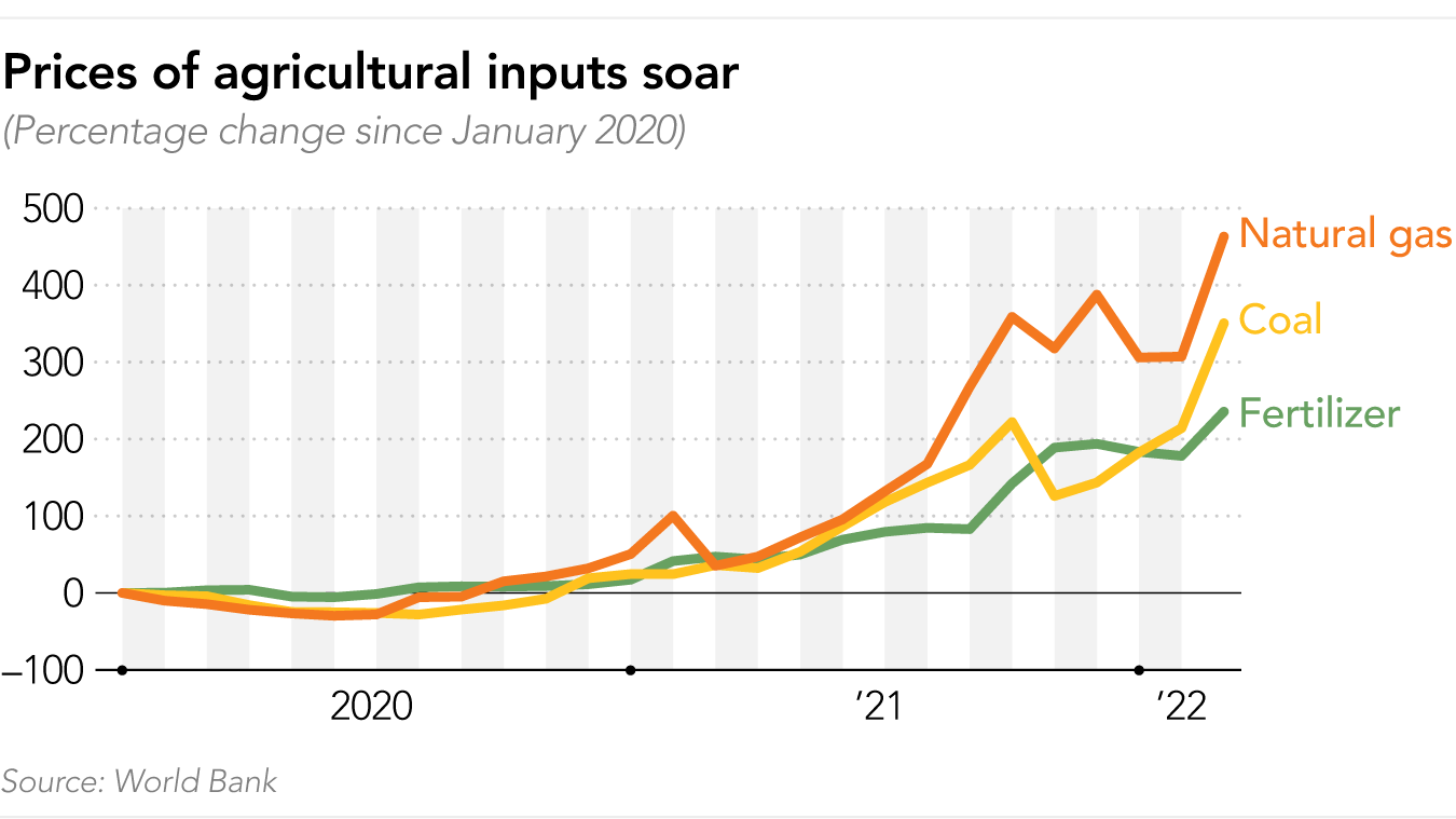 Energy prices, especially coal and natural gas in Europe, surged in 2021 and are expected to increase further this year. That has taken a toll on fertilizer markets. Several chemical companies curtailed output or temporarily shut production facilities due to surging input prices.