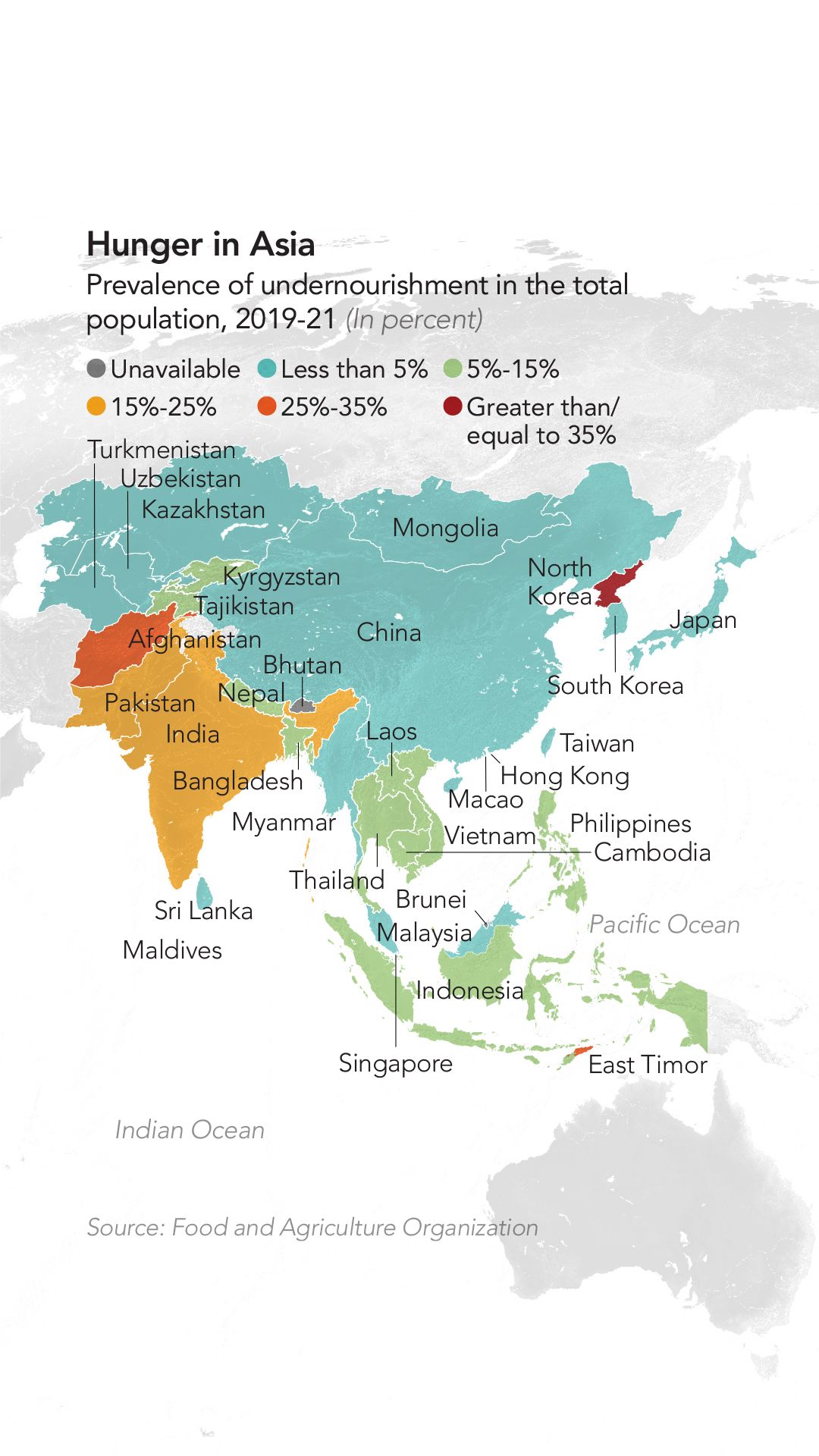 More than 424 million faced hunger in Asia in 2021, according to the SOFI report, which is published jointly by five UN agencies. This is up from 398.2 million in 2020 and 339.9 million in 2019.