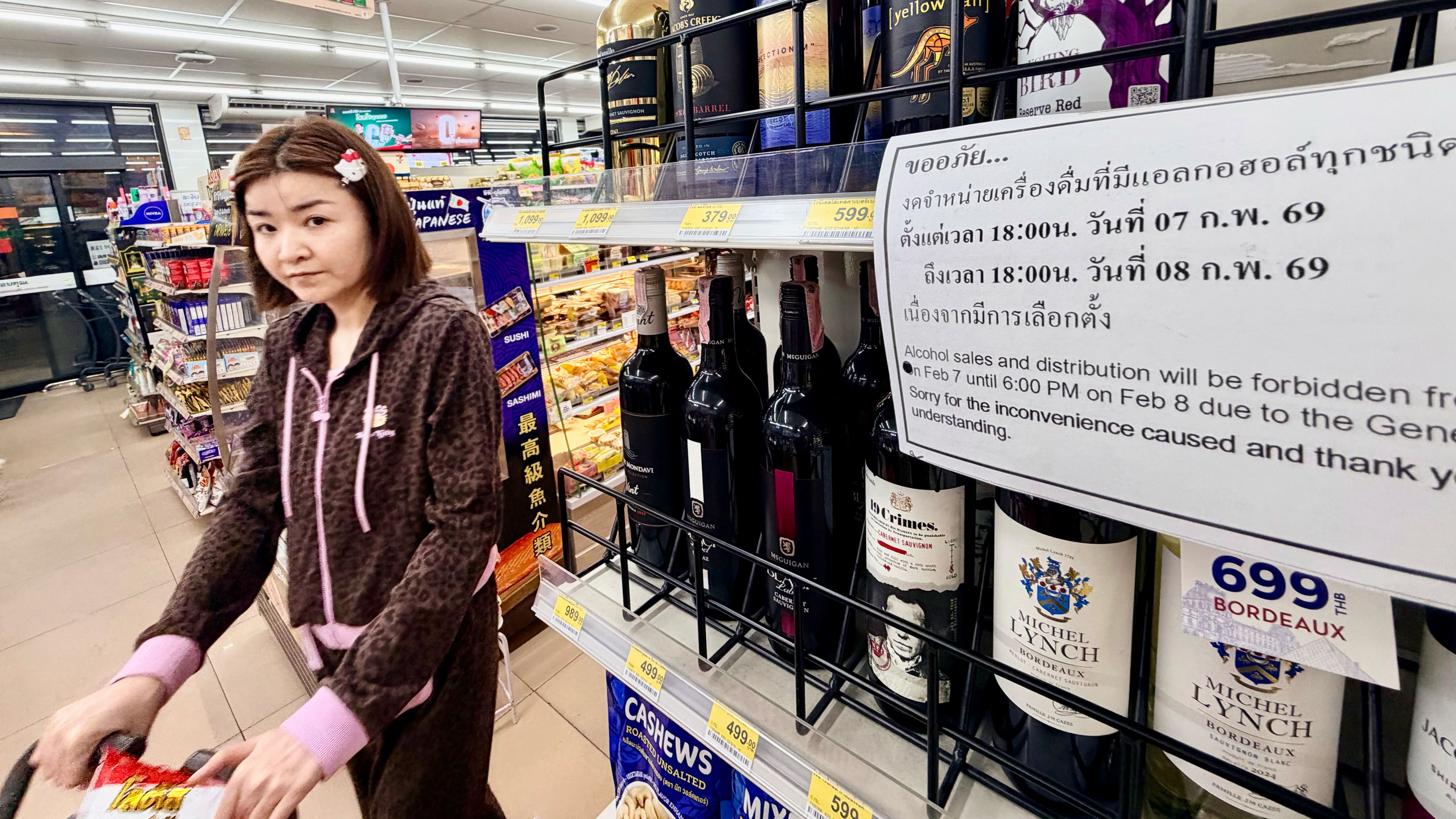 Alcohol sales are banned at a convenience store in Bangkok on Feb. 7. (Photo by Ken Kobayashi)