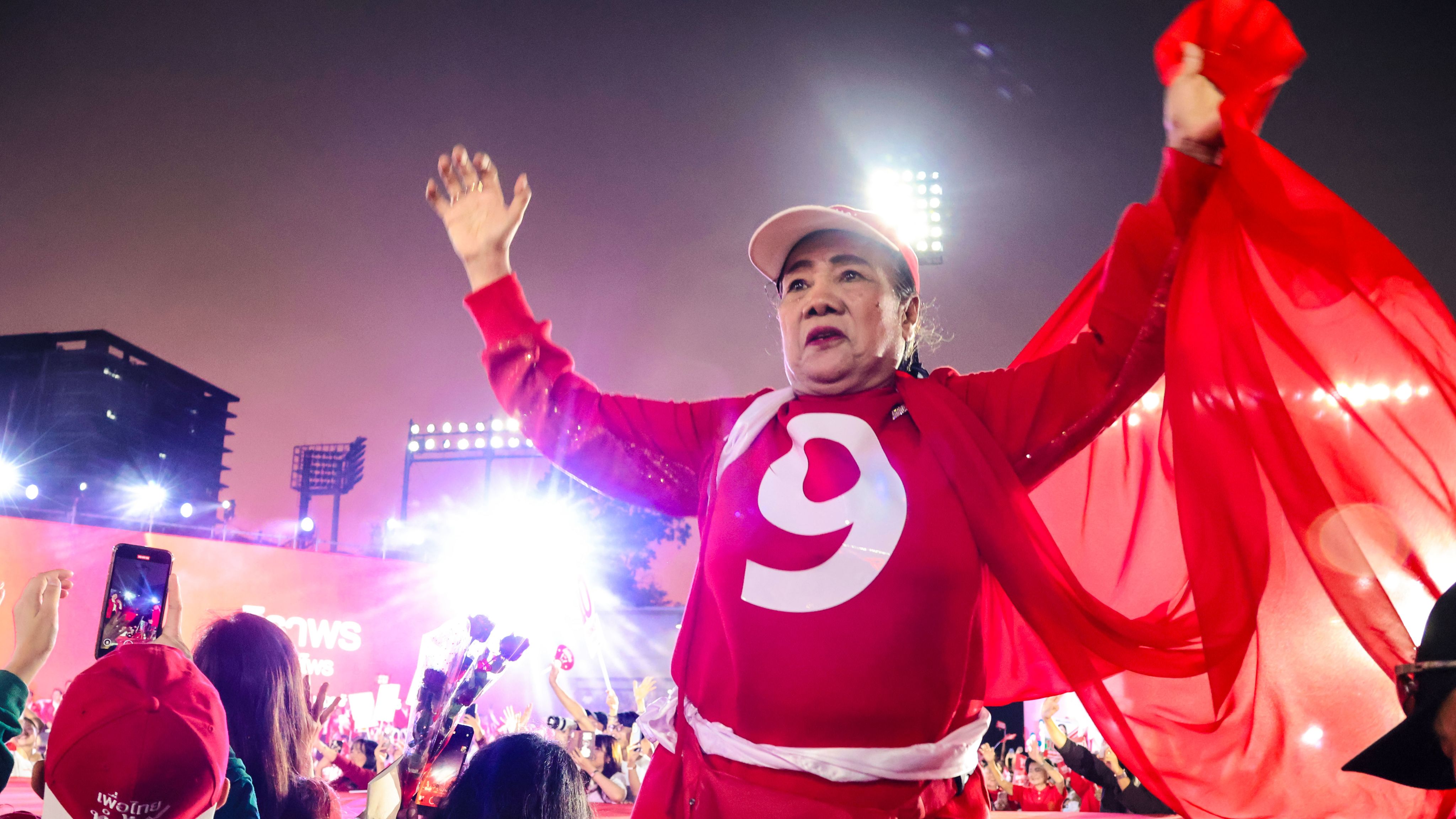 Pheu Thai Party supporter poses during a campaign rally event in Bangkok, Thailand, Feb. 6. (Photo by Yuka Konishi)