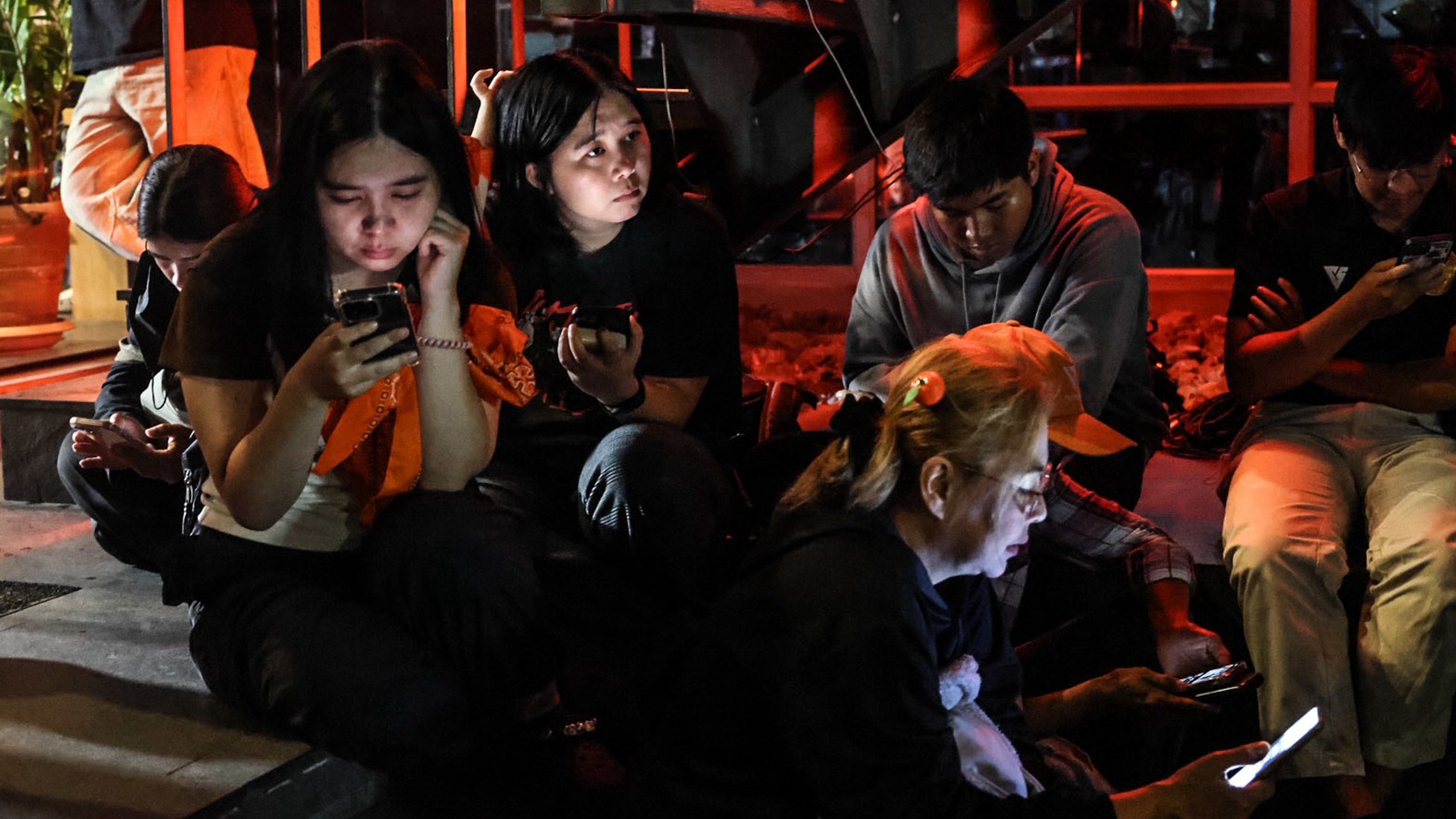 Supporters of People's Party monitor the results on their smart phones at party’s headquarters in Bangkok on Feb. 8. (Photo by Ken Kobayashi)