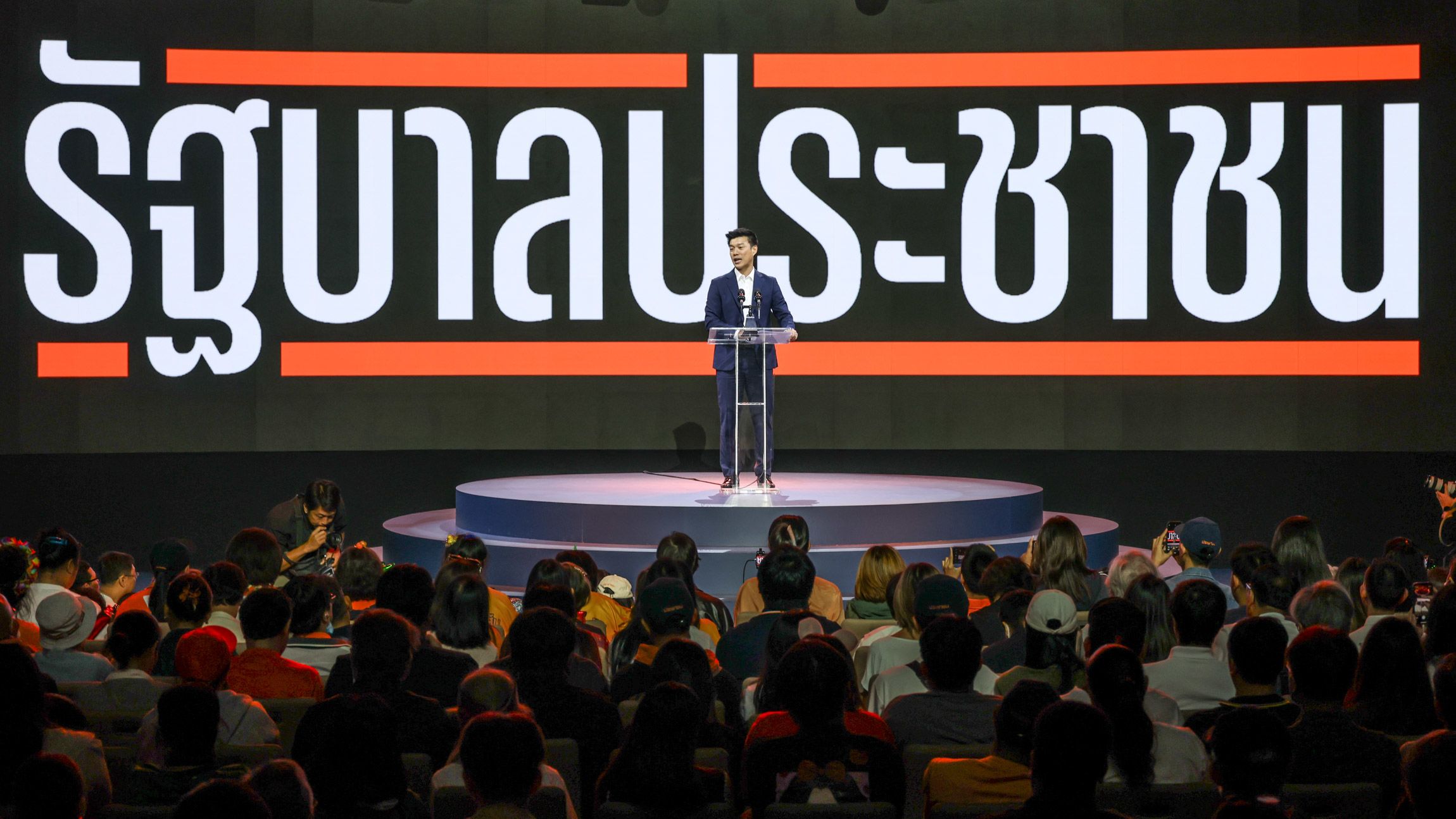 People's Party leader and prime ministerial candidate Natthaphong Ruengpanyawut speaks during a press conference in Bangkok, following Thailand's general election on Feb. 8. (Photo by Ken Kobayashi)