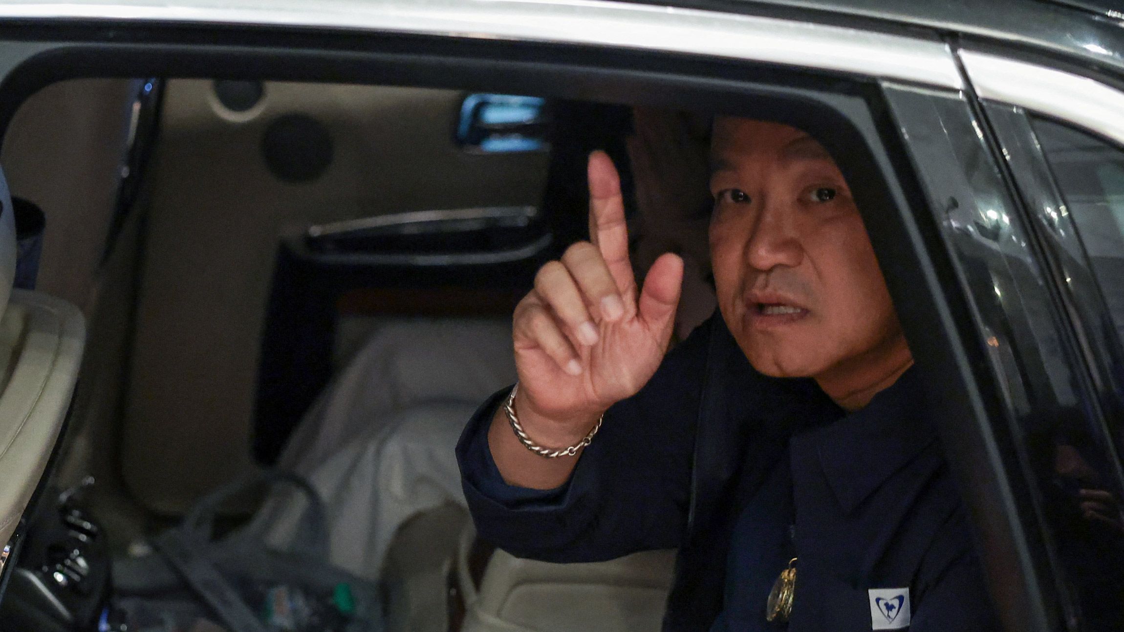 Anutin leaves the party headquarters in Bangkok on Feb. 8. (Photo by Chalinee Thirasupa/Reuters)