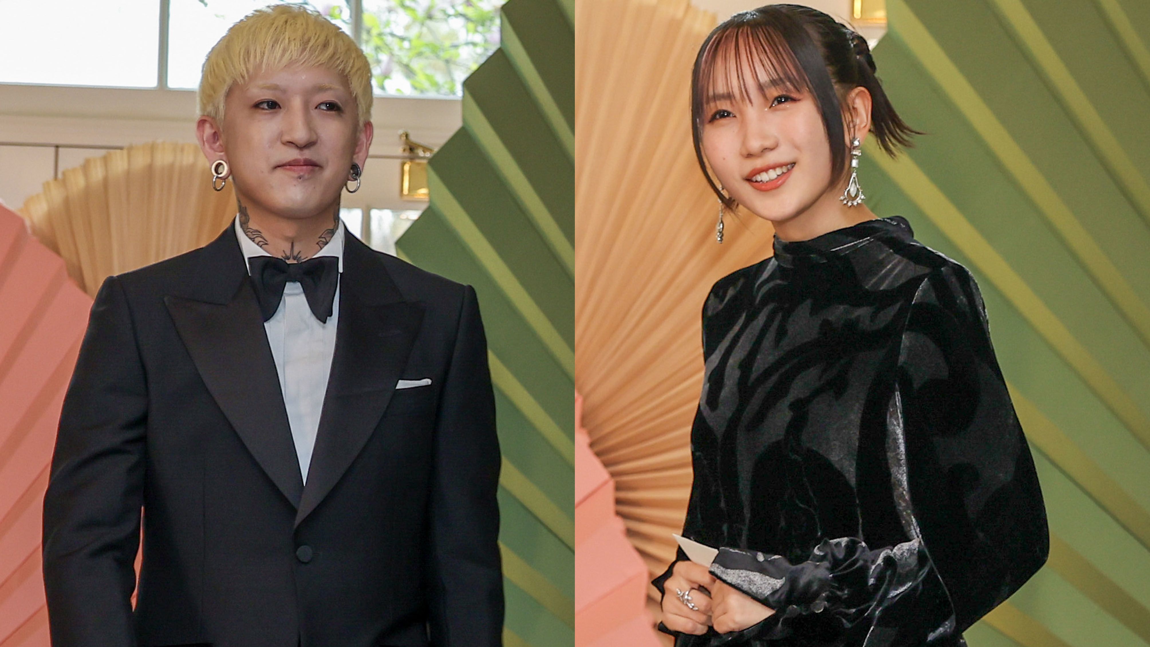 Ayase, left, and Ikura of Japanese superduo Yoasobi brought a youthful edge to proceedings. (Photo: AP)