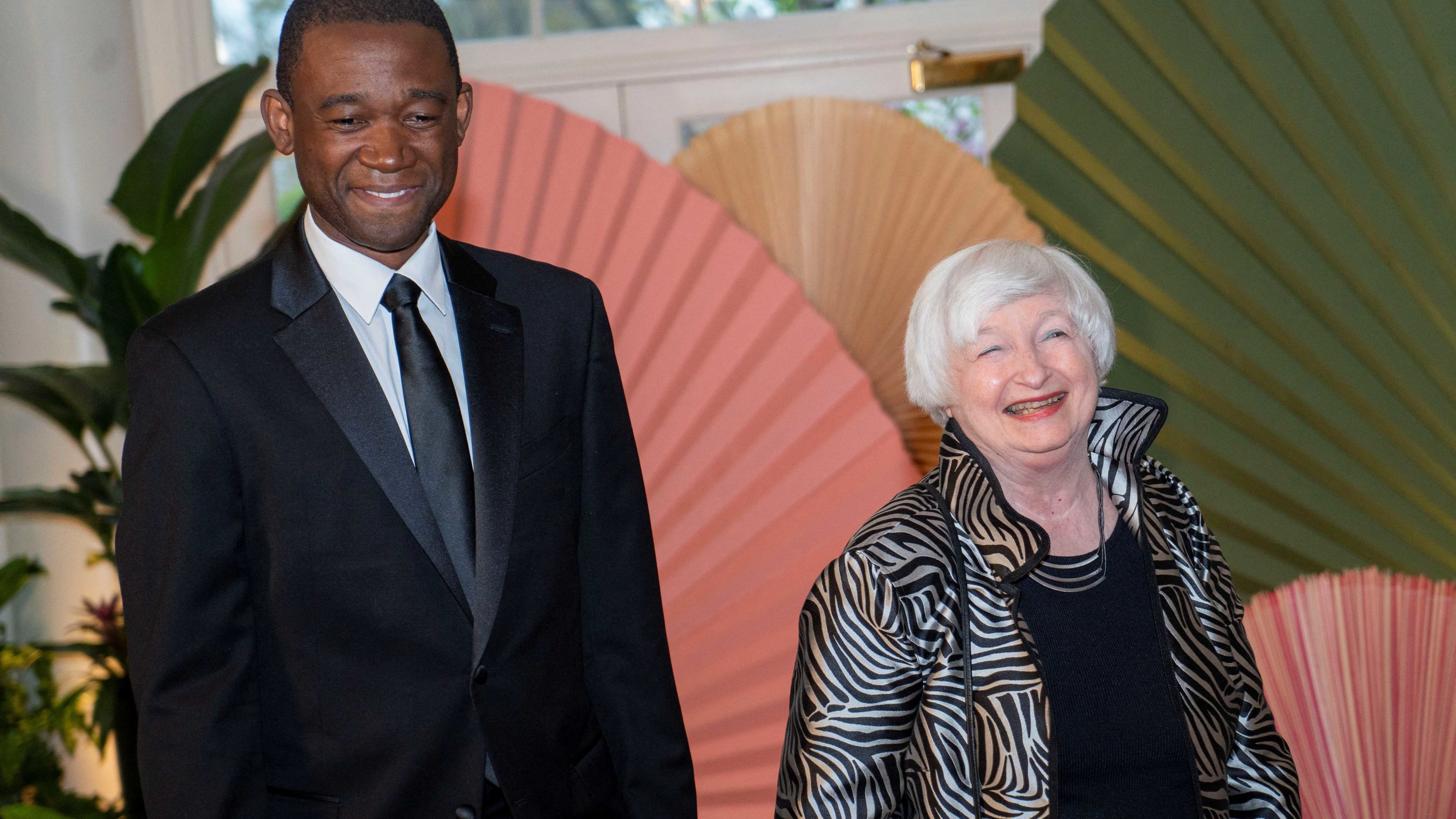 Deputy U.S. Treasury Secretary Wally Adeyemo and U.S. Treasury Secretary Janet Yellen smile on their way in. (Photo: Reuters)