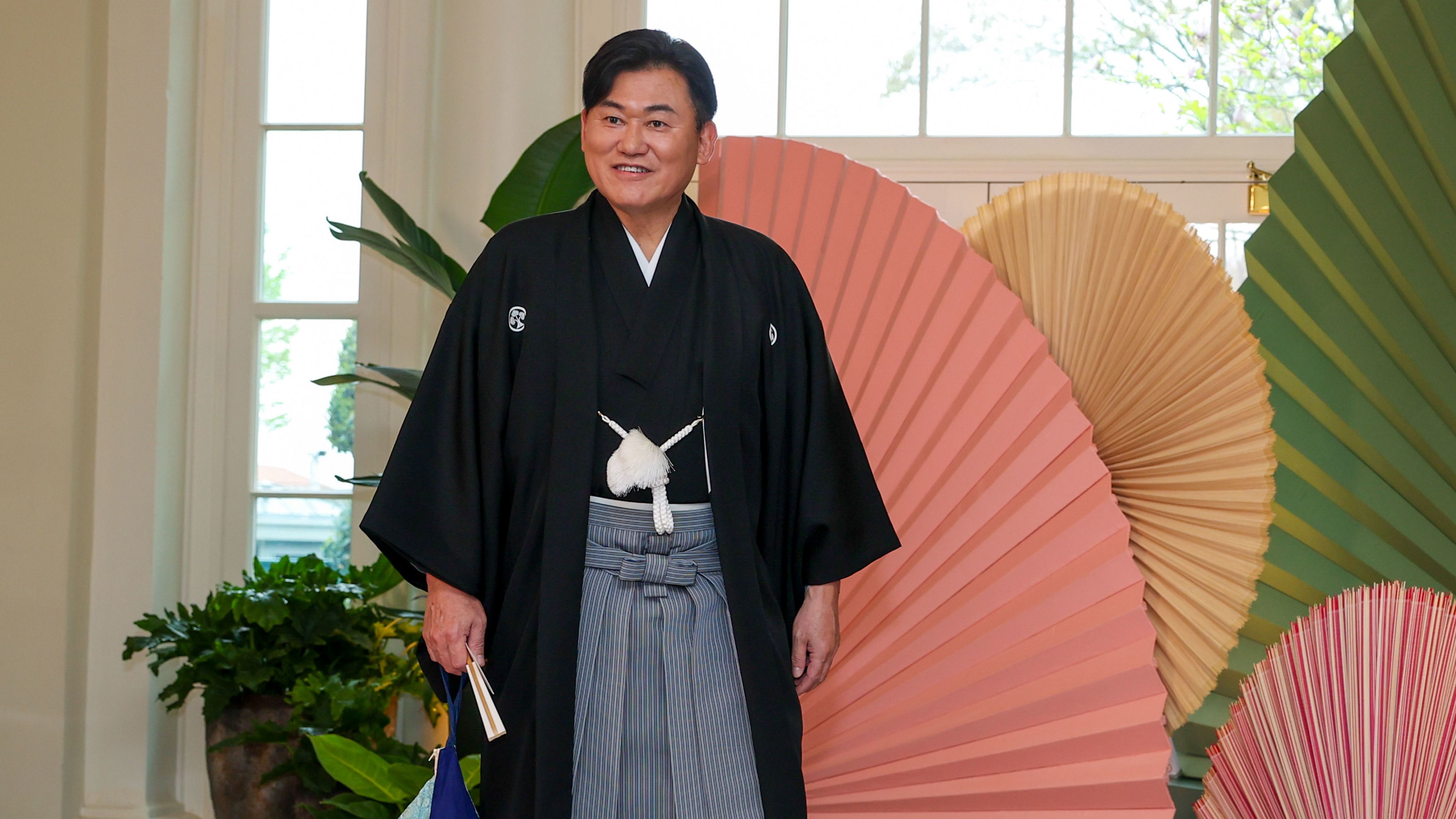 Rakuten Group Chairman and CEO Hiroshi Mikitani wore traditional Japanese clothing to the event. (Photo: Getty Images)