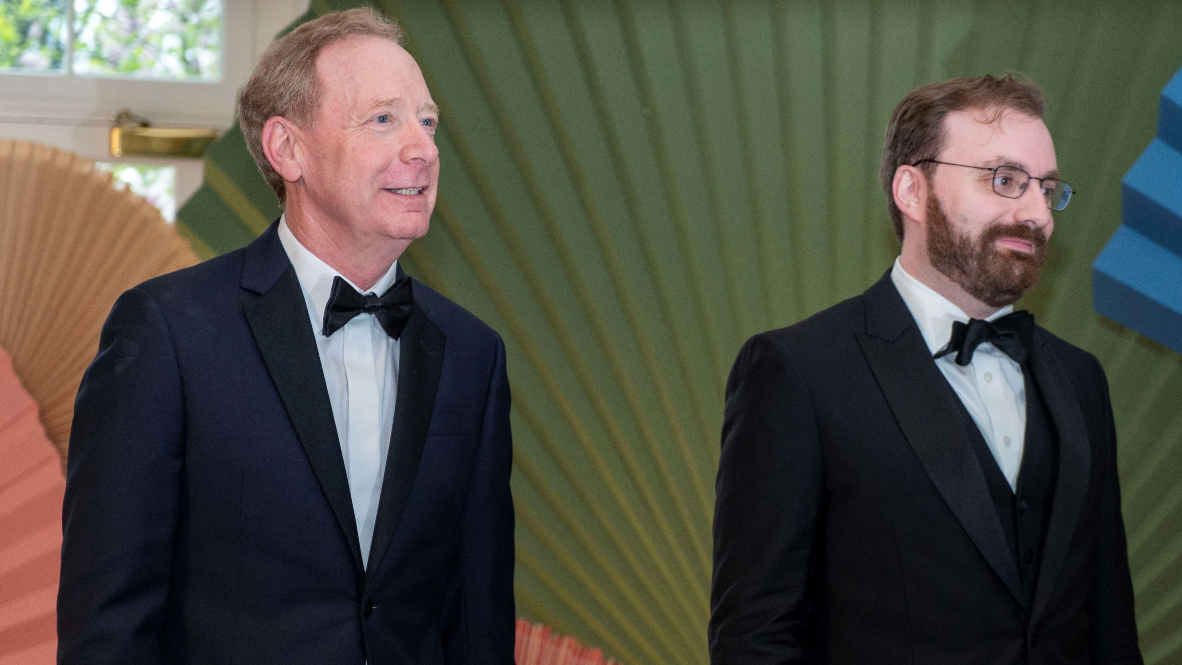 Microsoft President Brad Smith, left, poses for photos alongside Gregory Smith. (Photo: Reuters)
