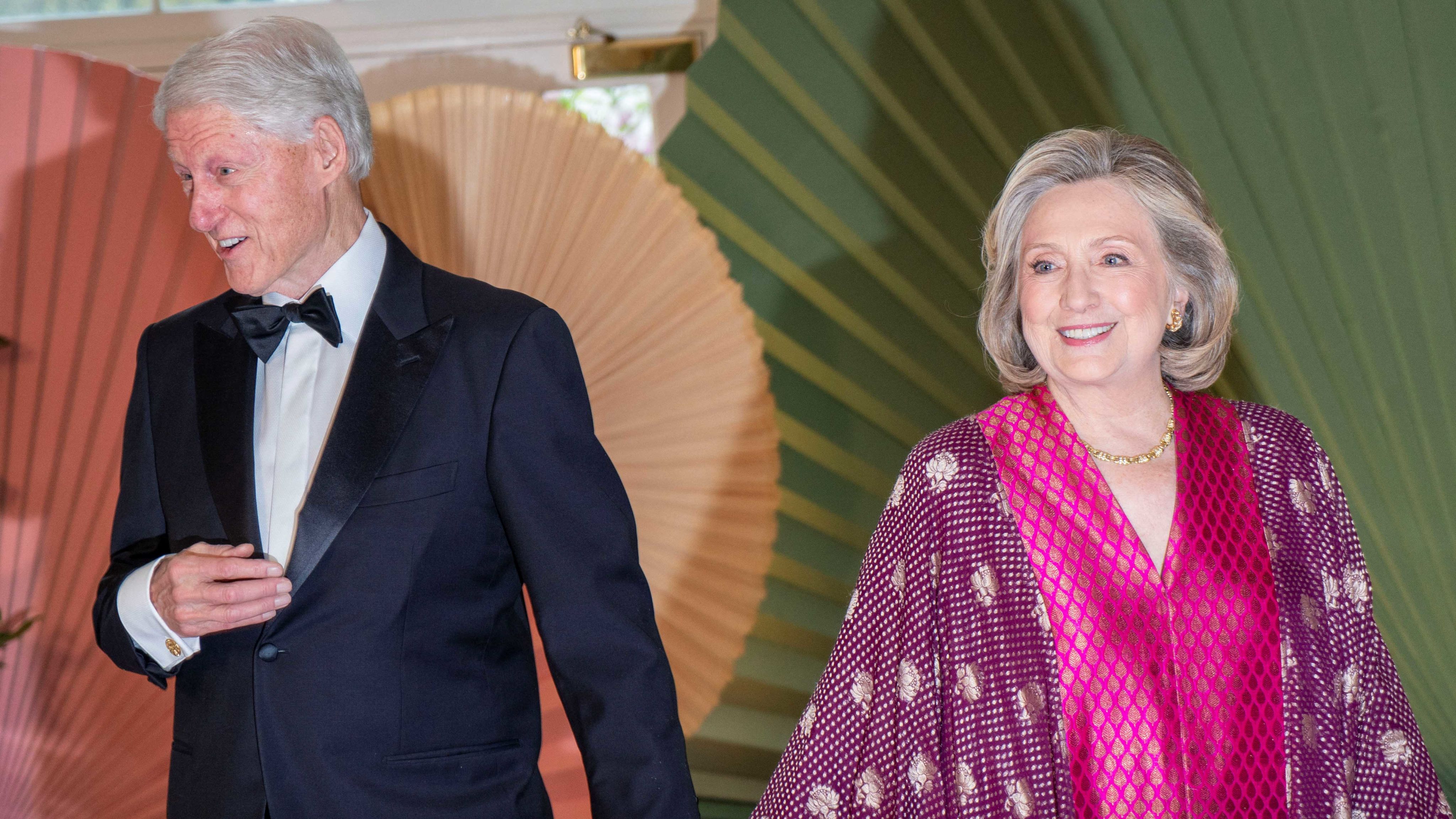 Former President Bill Clinton and ex-Secretary of State Hillary Rodham Clinton make their way into the meal. (Photo: Reuters)