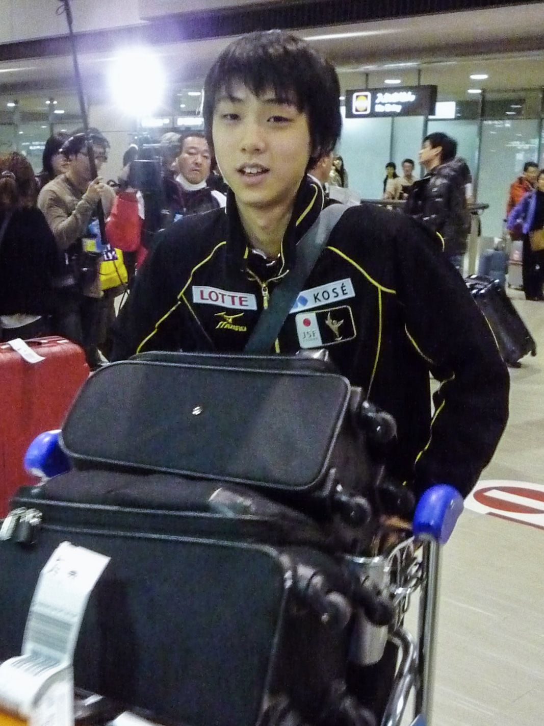 Hanyu returns to Japan after winning the World Junior Figure Skating Championship in 2010. (Photo by Kyodo)
