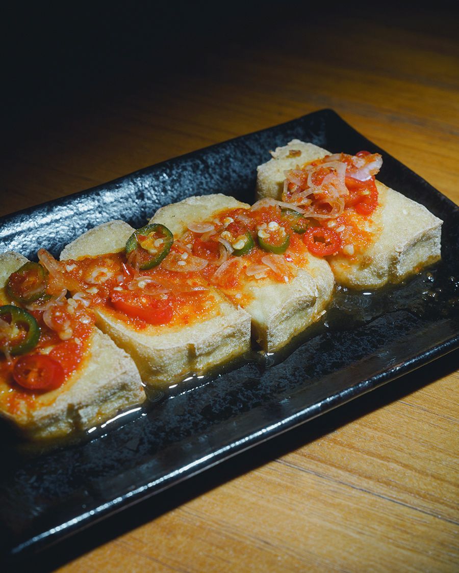 The store’s Fujiwara tofu, deep-fried and topped with chili.