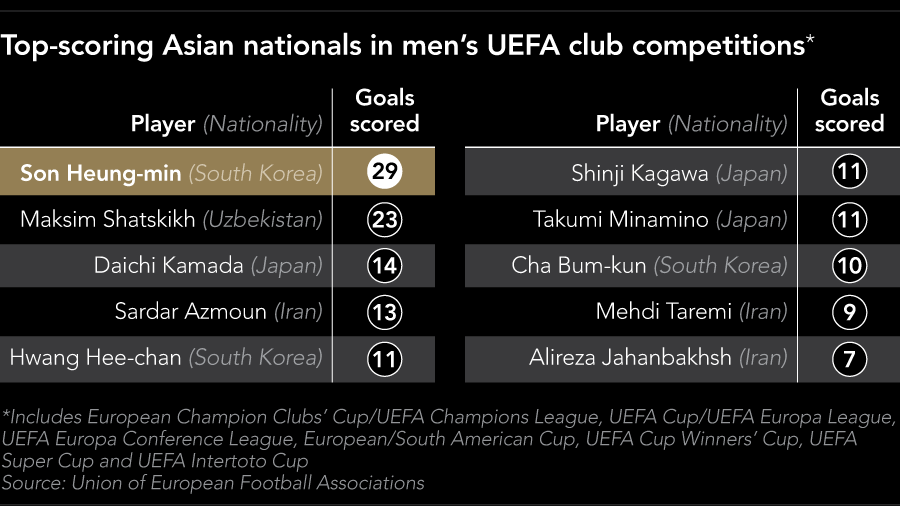 Son may not have won a league championship with Tottenham, but he has exceeded the exploits of Nakata and Park. “He is probably the first Asian attacking star who has played at a world-class level for nearly a decade,” Beijing-based sports consultant Bi Yuan told Nikkei Asia. “He has also reached a level that no other Asian player has been close to: winning the Golden Boot in arguably the best league in the world. He has shown that Asia can produce an attacking superstar like South America and Africa.”