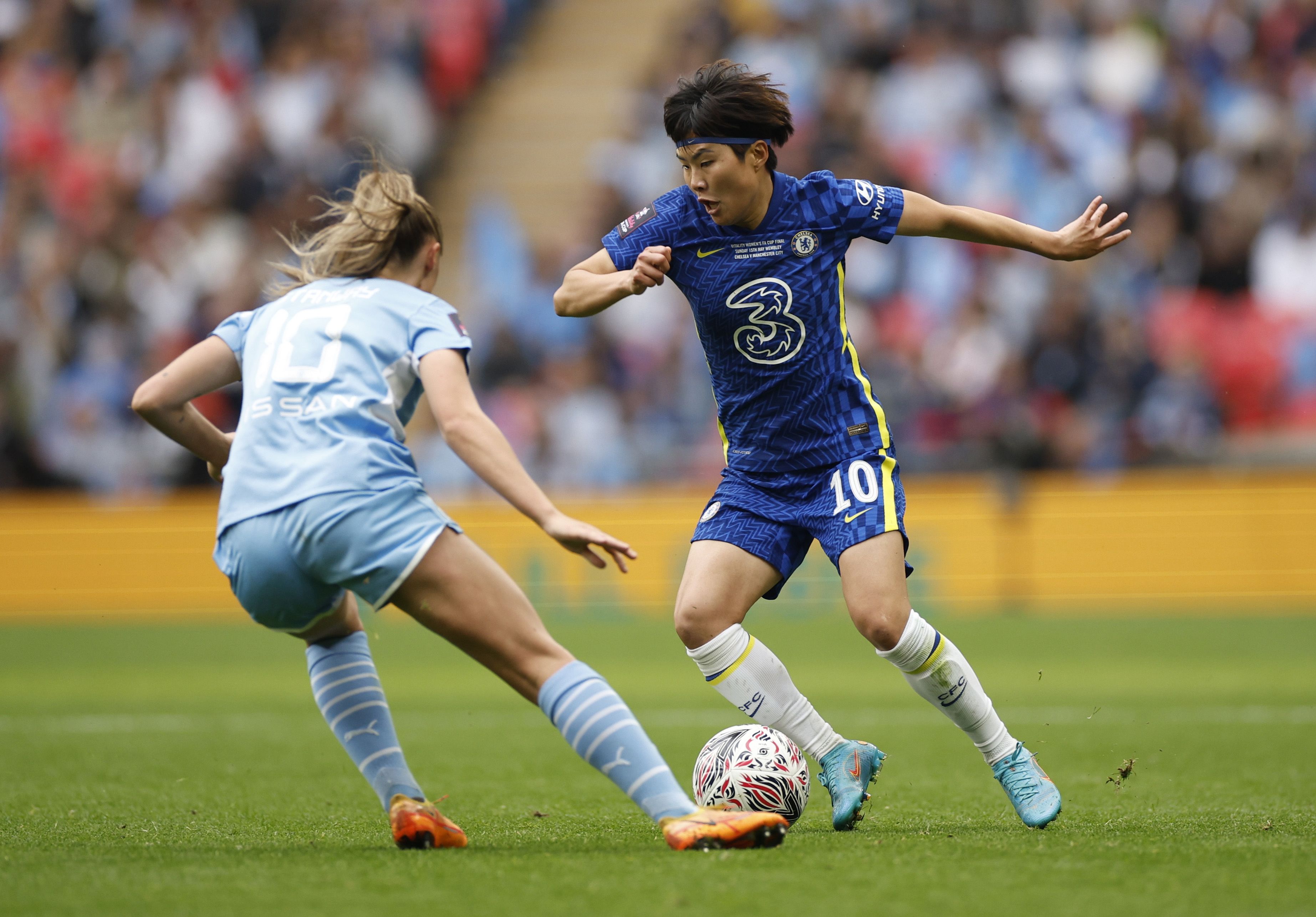 South Korea's Ji So-yun plays for Chelsea against Manchester City in the Women's FA Cup Final in May 2022. (© Reuters)