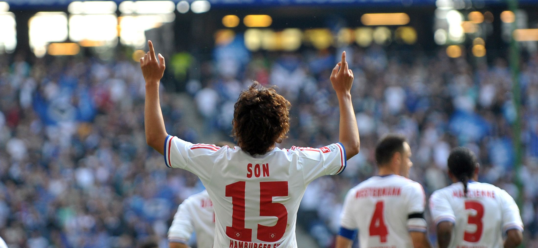 Son celebrates after scoring a goal for Hamburg SV in Hamburg, Germany, in Aug. 2011. (© Reuters)