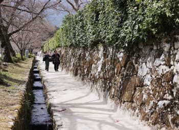 The town is famous for its drystone walls. "The walls were constructed with nozura-zumi, a traditional Japanese drystone technique that uses unshaped natural stones, by a group of accomplished stonemasons known as the Anoshu, who were active from the Sengoku period," said Kobayashi. "The stonemasons also built many of Japan's most famous castle walls. These walls remain remarkably sturdy even today."