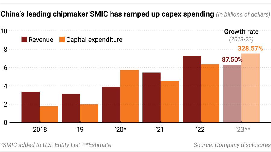 SMIC, which is blacklisted by the U.S., is undertaking its largest-ever expansion, having invested $24 billion in capital expenditures from 2020 to 2023, more than its total revenue during the same period, according to its financial statements.