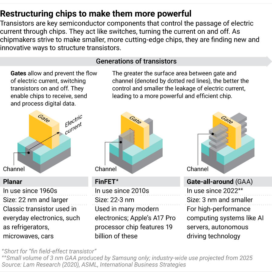 Now the chip titans are eyeing up an even more complex transistor structure – the so-called Gate-all-around – to squeeze more computing power onto the same tiny surface area.