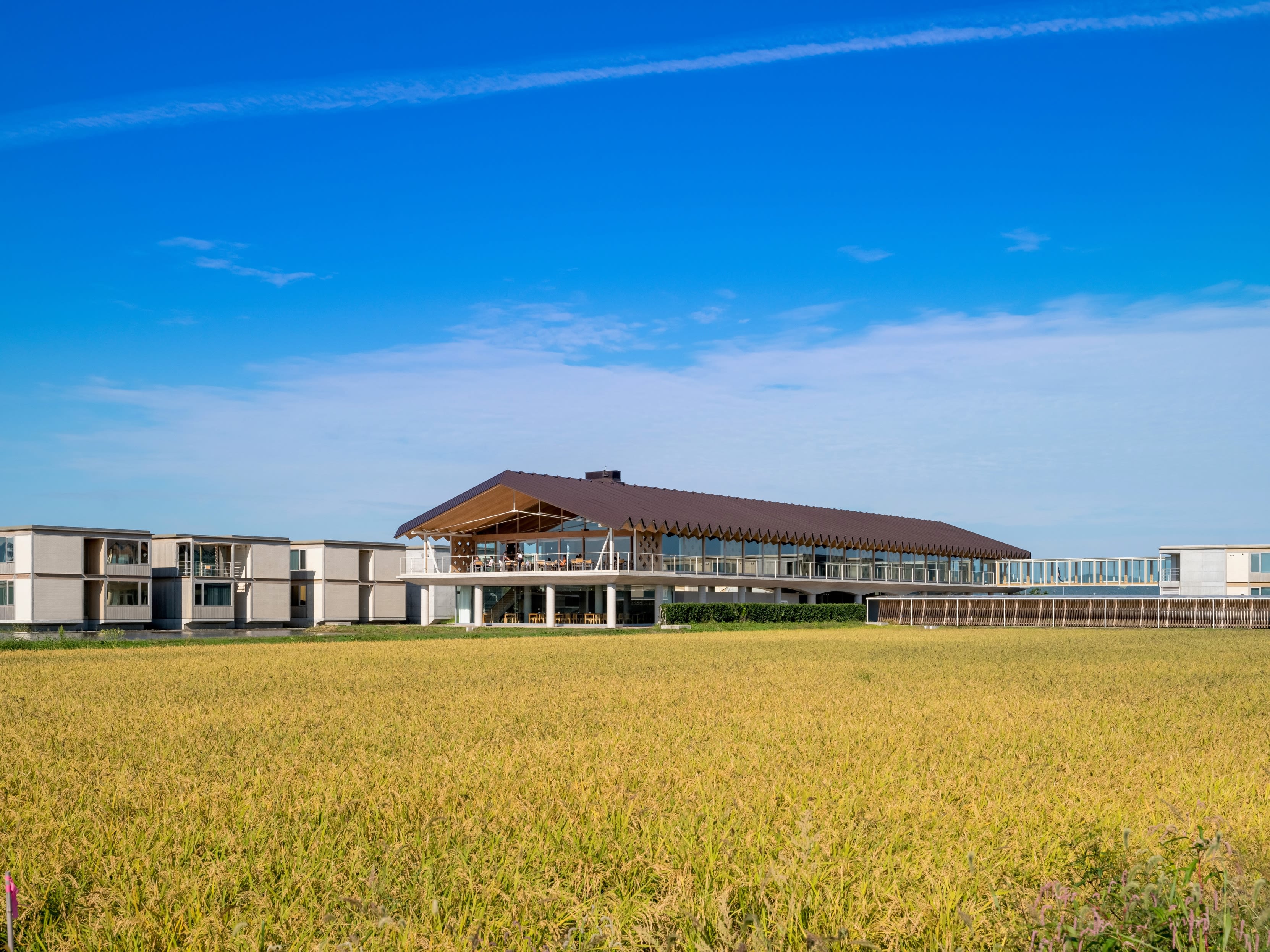 The Suiden Terrasse is a beautiful two-story wooden building that blends with the landscape, as if it were floating in a rice paddy. As the name suggests, the hotel showcases the countryside in a new way, using the nearby rice fields as a backdrop, according to Kanako Morito, a senior researcher at Jalan Research Center.