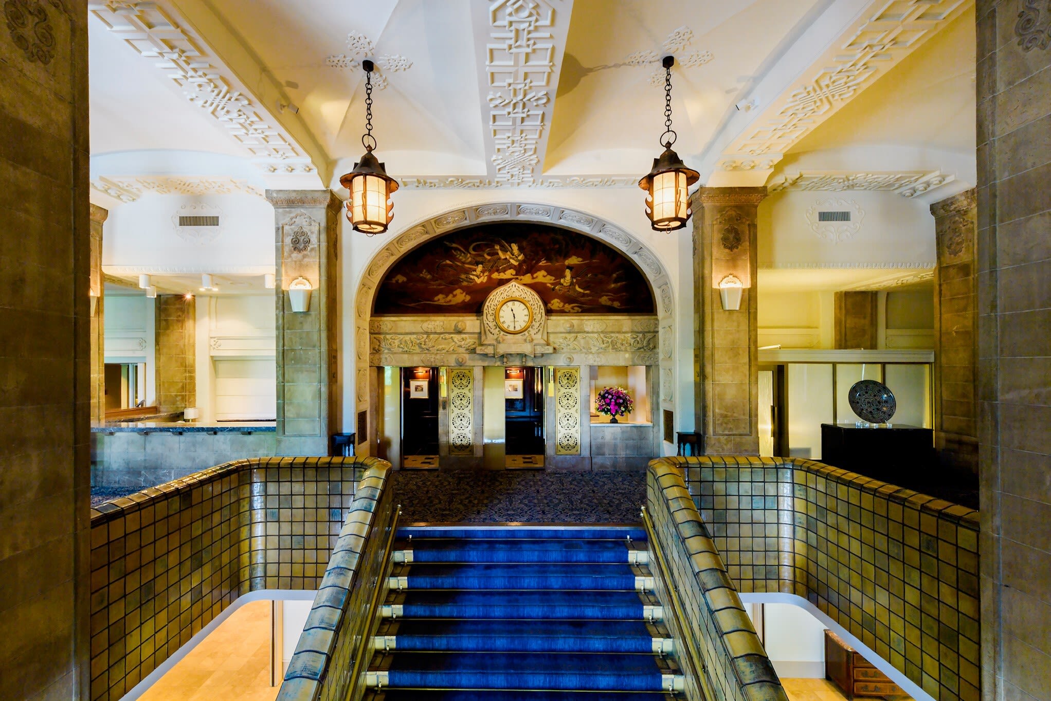 Architecture journalist Tatsuo Iso noted that the long lobby space, lined with pillars, gives visitors a sense of walking through a forest. Togo Murano's keen attention to detail is evident in every room, from the low-slung "swan chairs" in the lobby to the light fixtures.
