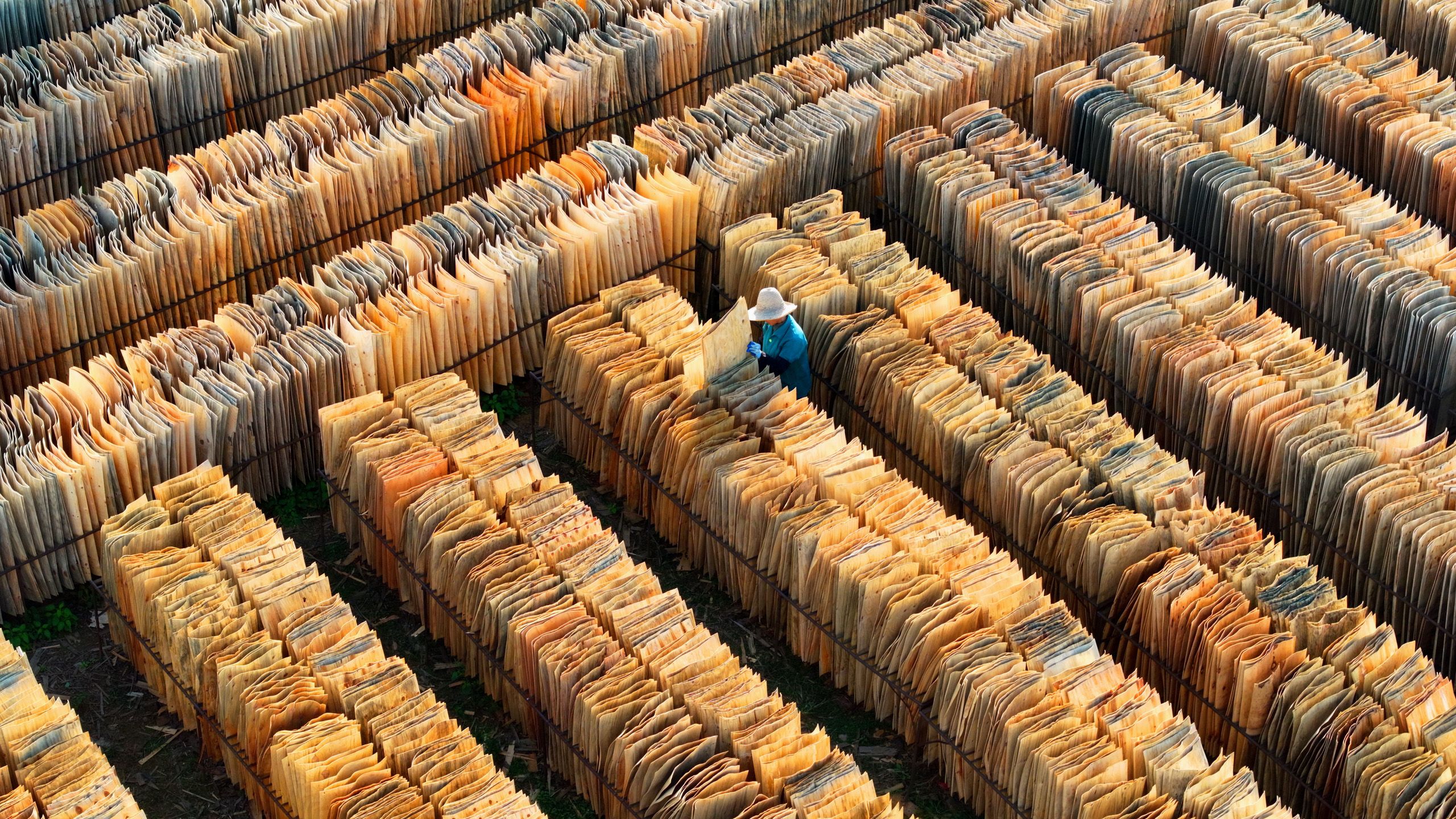 Aerial view of a worker drying slabs at a wood processing factory on Nov. 30 in Jiangxi Province of China. (Photo by Getty Images)