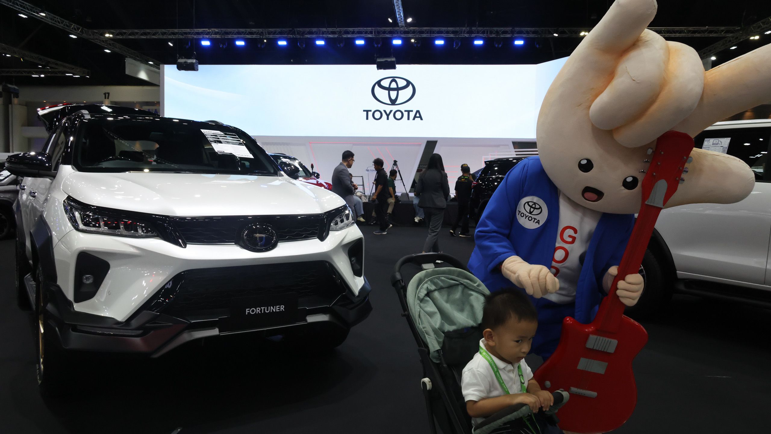 Vehicles on display at a Toyota booth during the Thailand International Motor Expo 2024 on Nov. 28 in Bangkok. (Photo by Yuki Kohara)