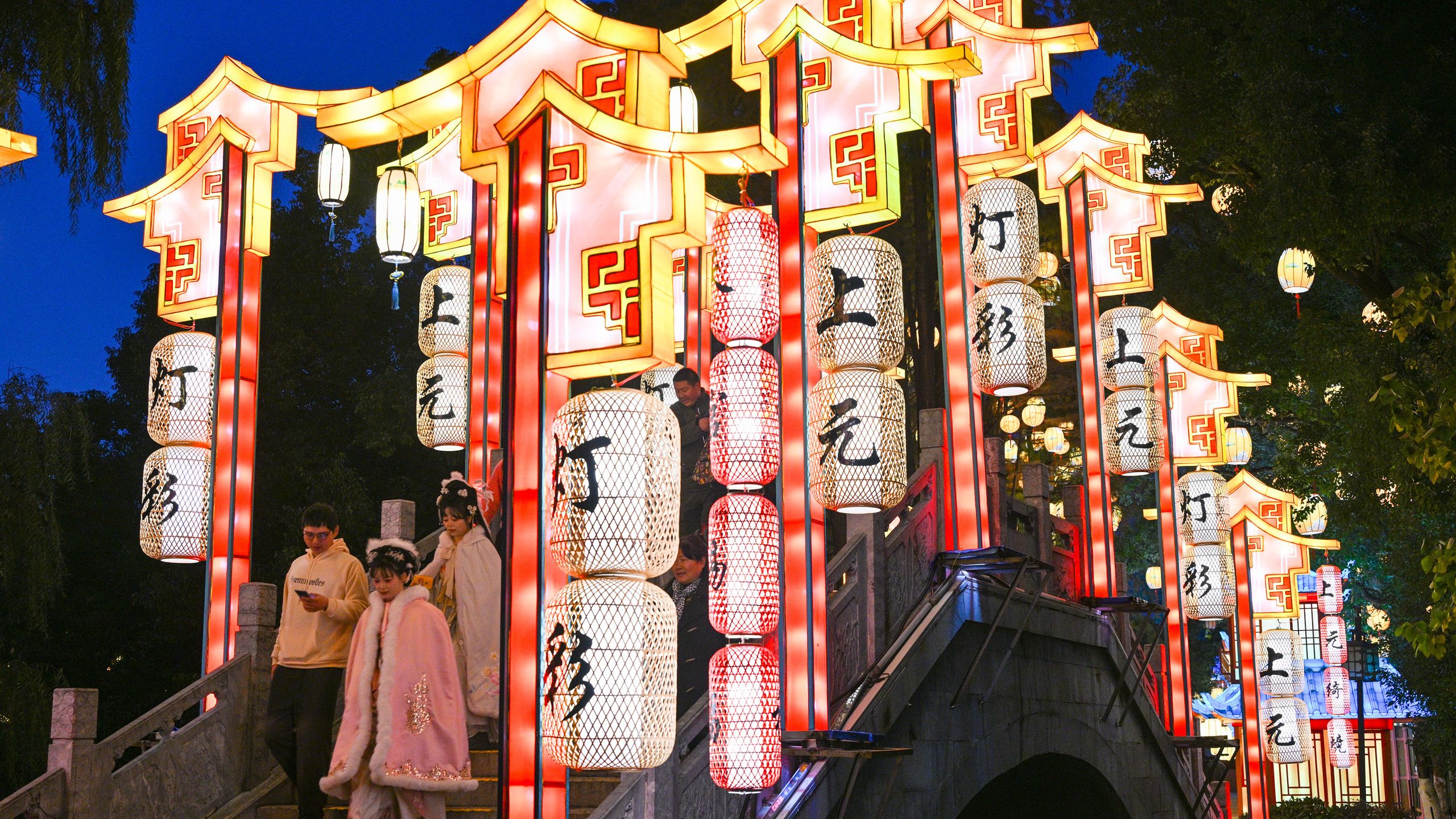People view illuminated lanterns during an intangible cultural heritage art exhibition at Bailuzhou Park on Dec. 1 in Nanjing, China. (Photo by Getty Images)