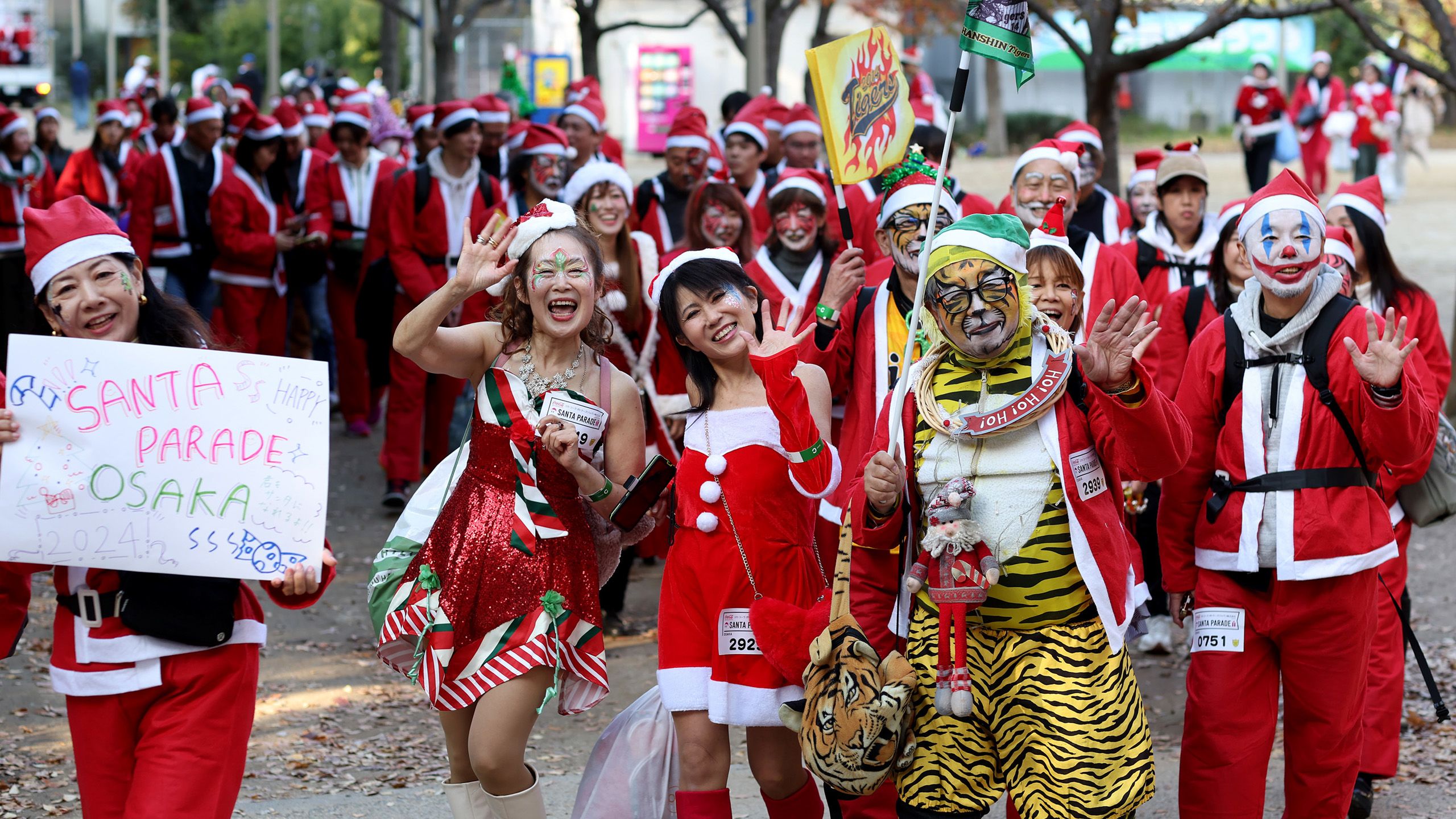 Participants wearing a Santa Claus costume attend the Osaka Santa Parade on Dec. 1 in Osaka, Japan. The parade is a festive charity event where participants dress as Santa Claus and march through the streets of Osaka, spreading holiday cheer while raising funds for children battling illnesses. (Photo by Getty Images)