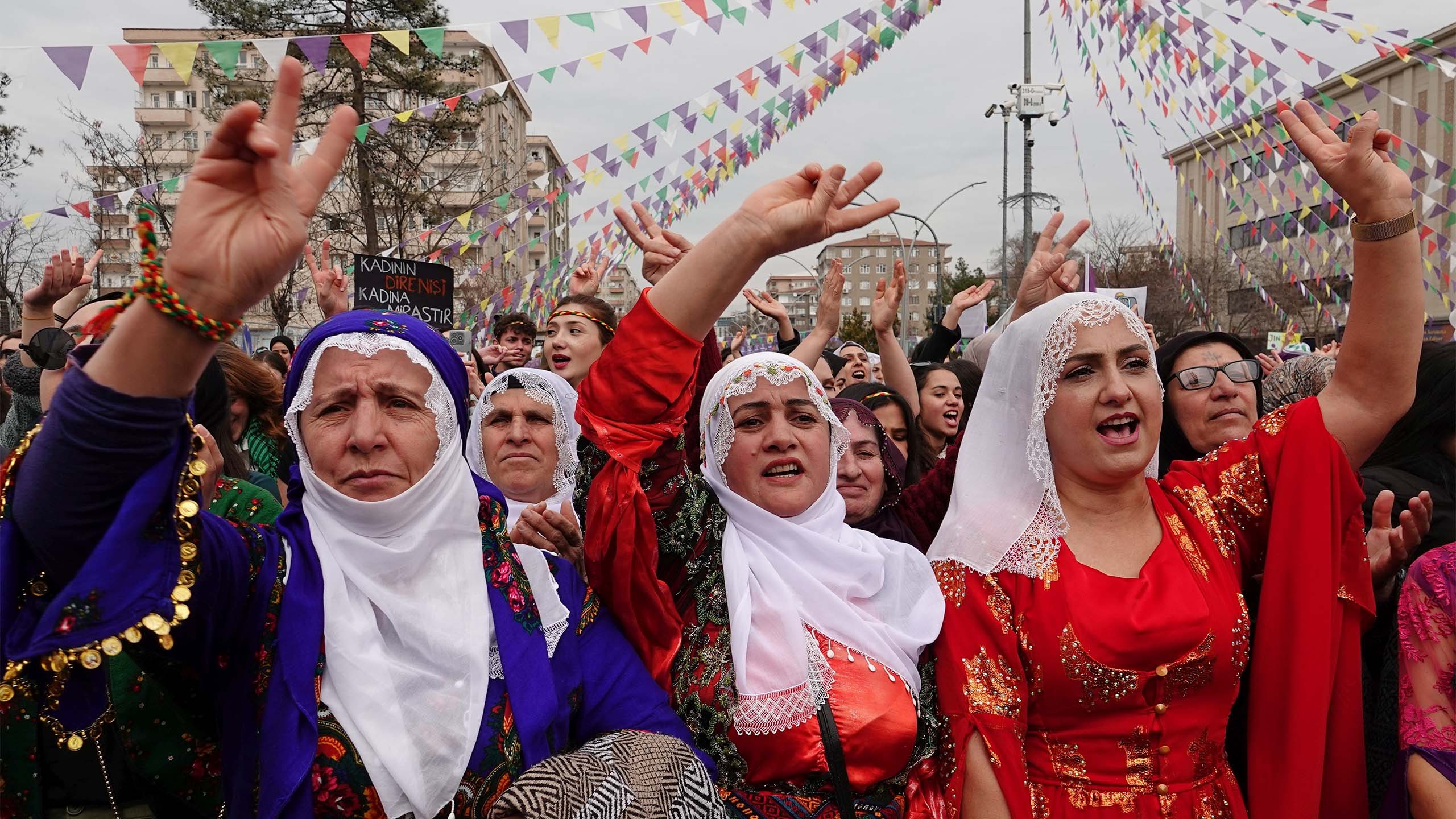 Kurdish women celebrate International Women's Day on March 8 with a rally in Station Square in Diyarbakir, Turkey. (Photo by Mehmet Masum Suer/Getty Images)