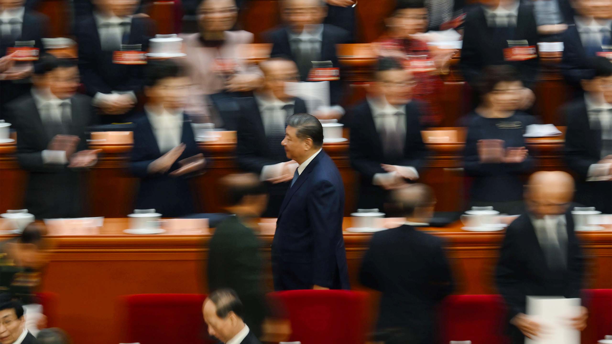Chinese President Xi Jinping leaves the opening ceremony of the People's Political Consultative Conference on March 4 in Beijing. (Photo by Tomoki Mera)