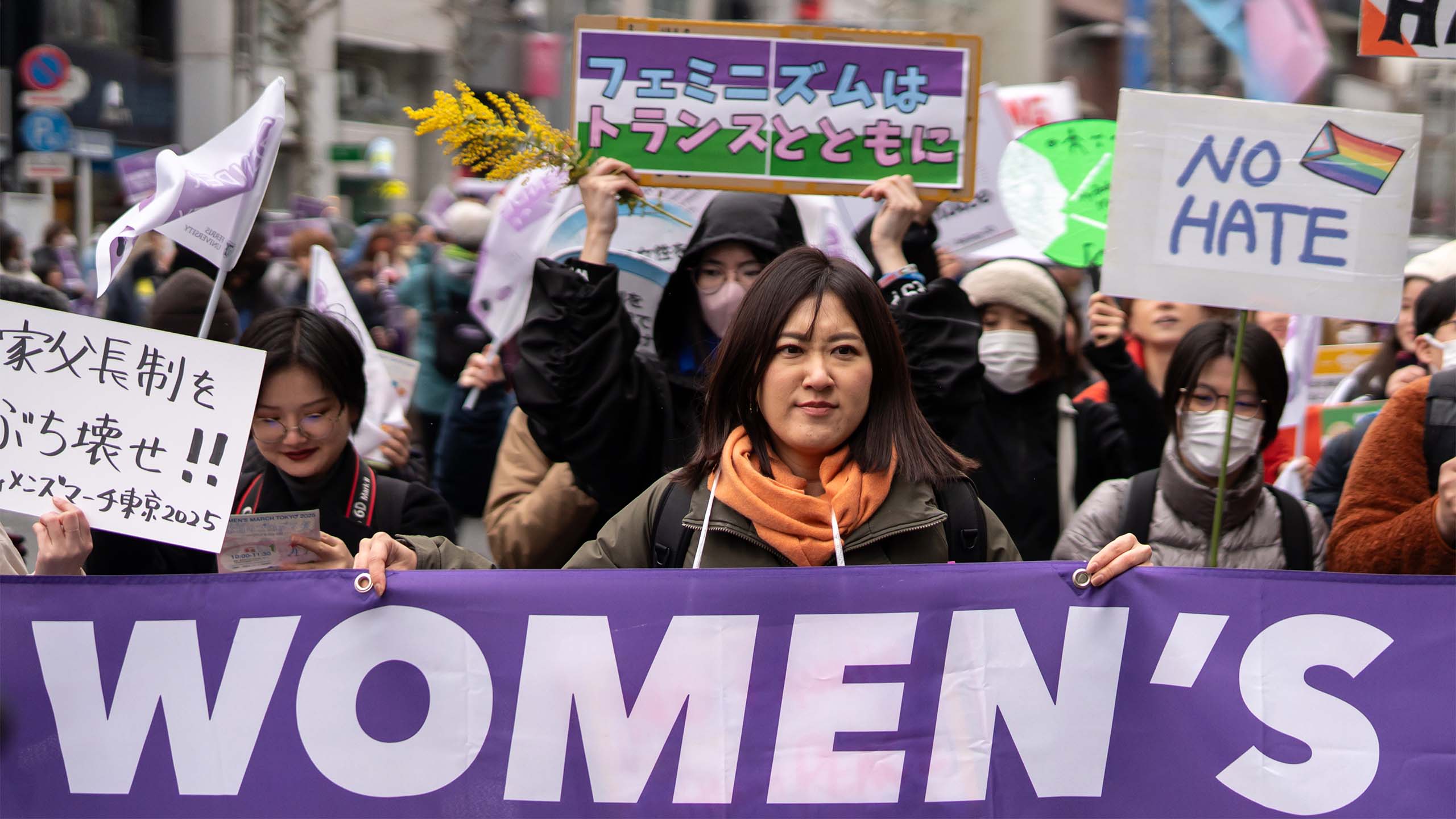 People in Tokyo participate in the Women's March on March 8. (Photo by Tomohiro Ohsumi/Getty Images)