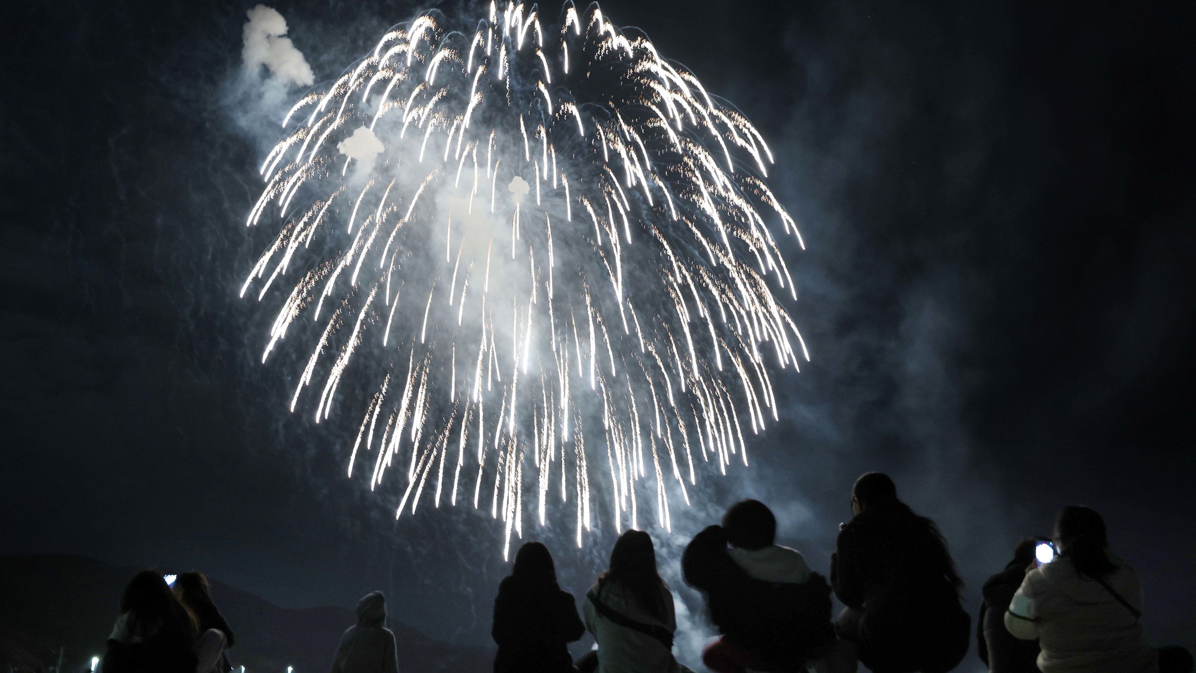 Fireworks are set off in remembrance of the victims of the 2011 earthquake and tsunami, in Miyagi prefecture on March 11. (Photo by Akiyoshi Sugiura)