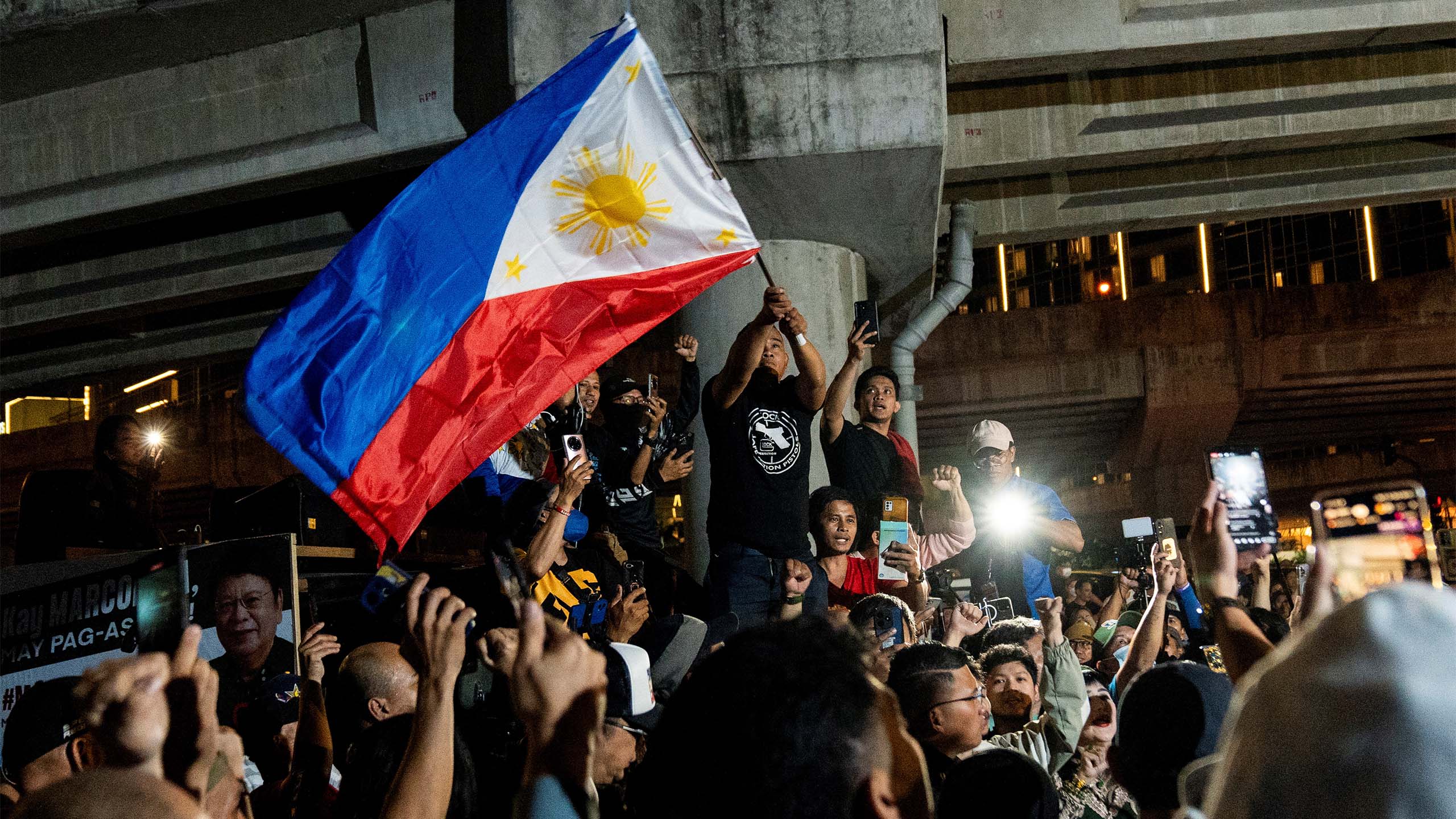 Duterte supporters protest outside Villamor Air Base in Manila on March 11, following the former Philippine president’s arrest on an International Criminal Court warrant for crimes against humanity linked to thousands of deaths over his brutal anti-drug campaign. (Photo by Lisa Marie David/Reuters)