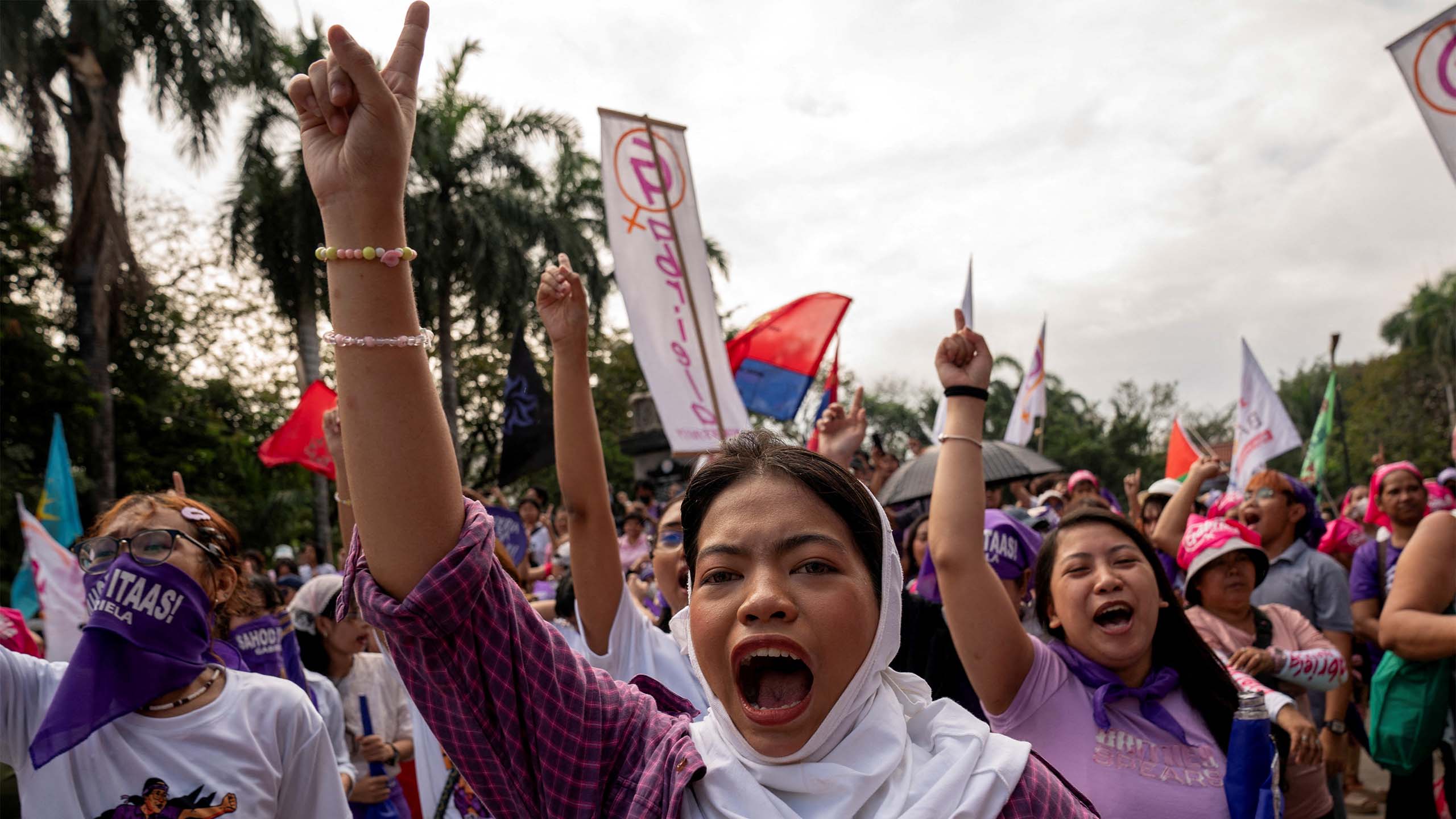 People dance during a protest to commemorate International Women's Day in Manila on March 8. (Photo by Lisa Marie David/Reuters)