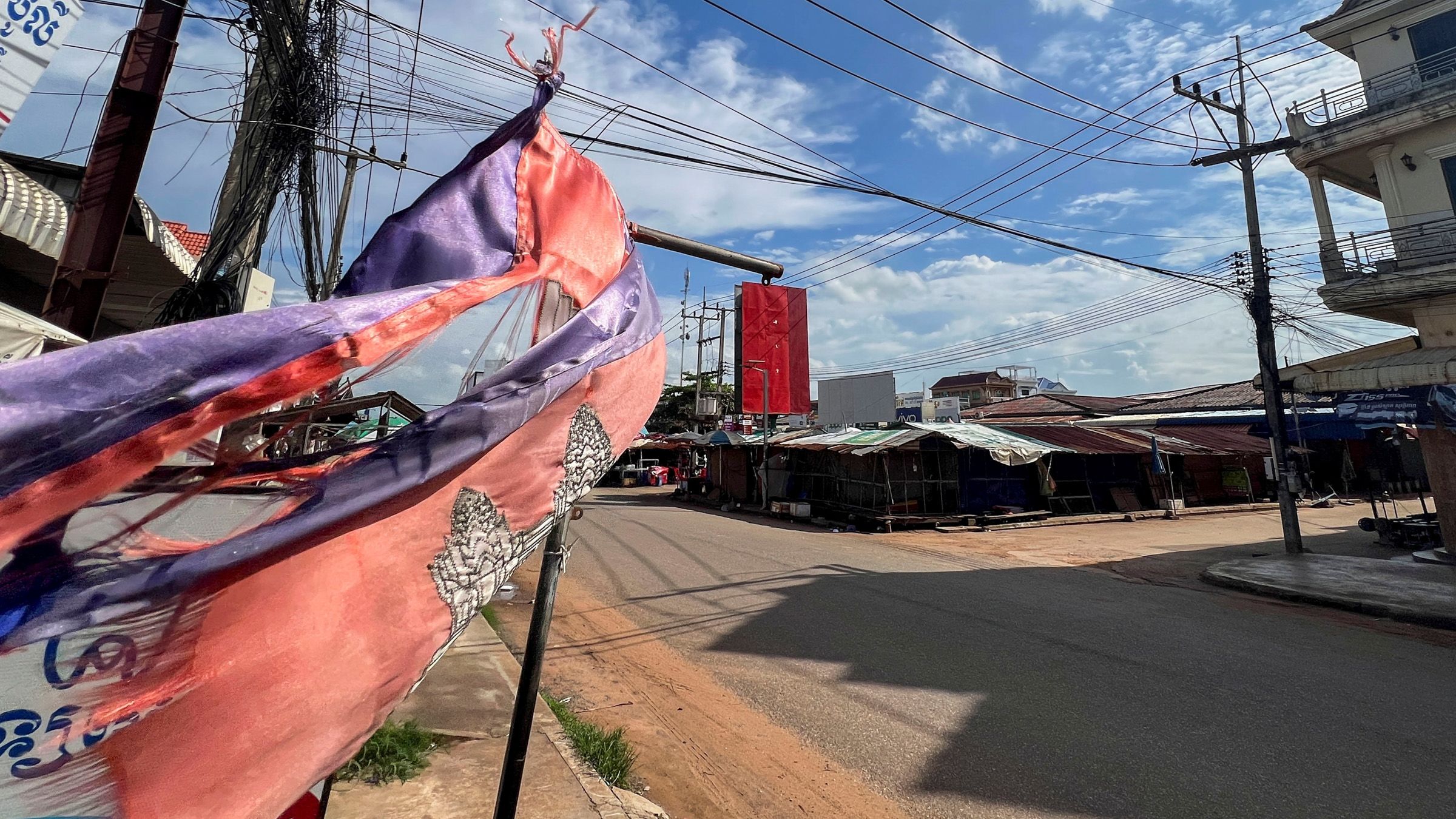 A view shows an empty street of Samraong, the capital of Oddar Meanchey province, Cambodia, about 20 kilometers from the border, on July 28. (Photo by Chantha Lach/Reuters)