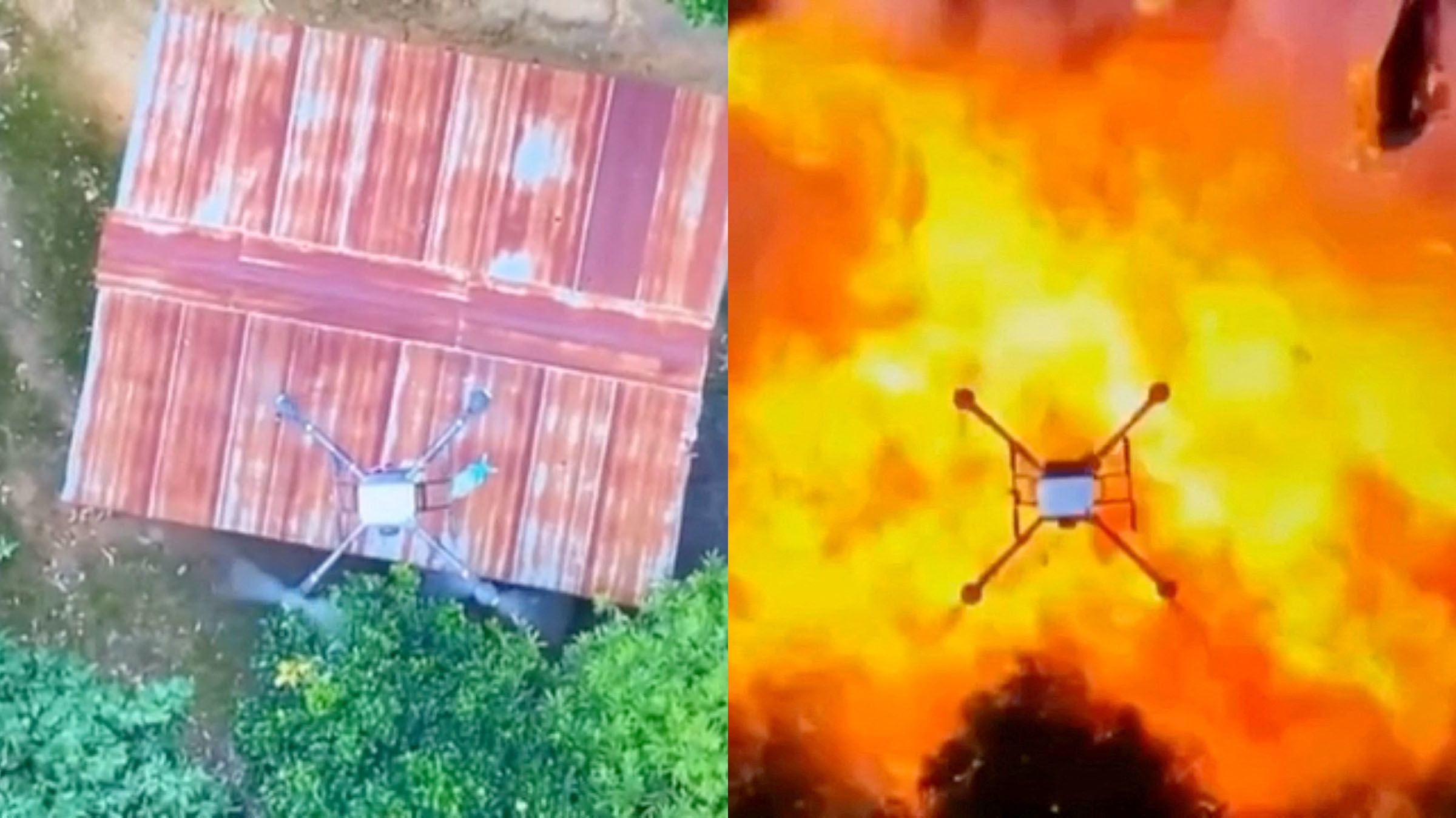 Screen grabs from a handout video released on July 25 shows a drone dropping a bomb during what Thai army says was an operation on a Cambodian military arms depot in an area given as Phu Ma Kuea Hill near Preah Vihear province, Cambodia. (Photo by Thai Army/Reuters)