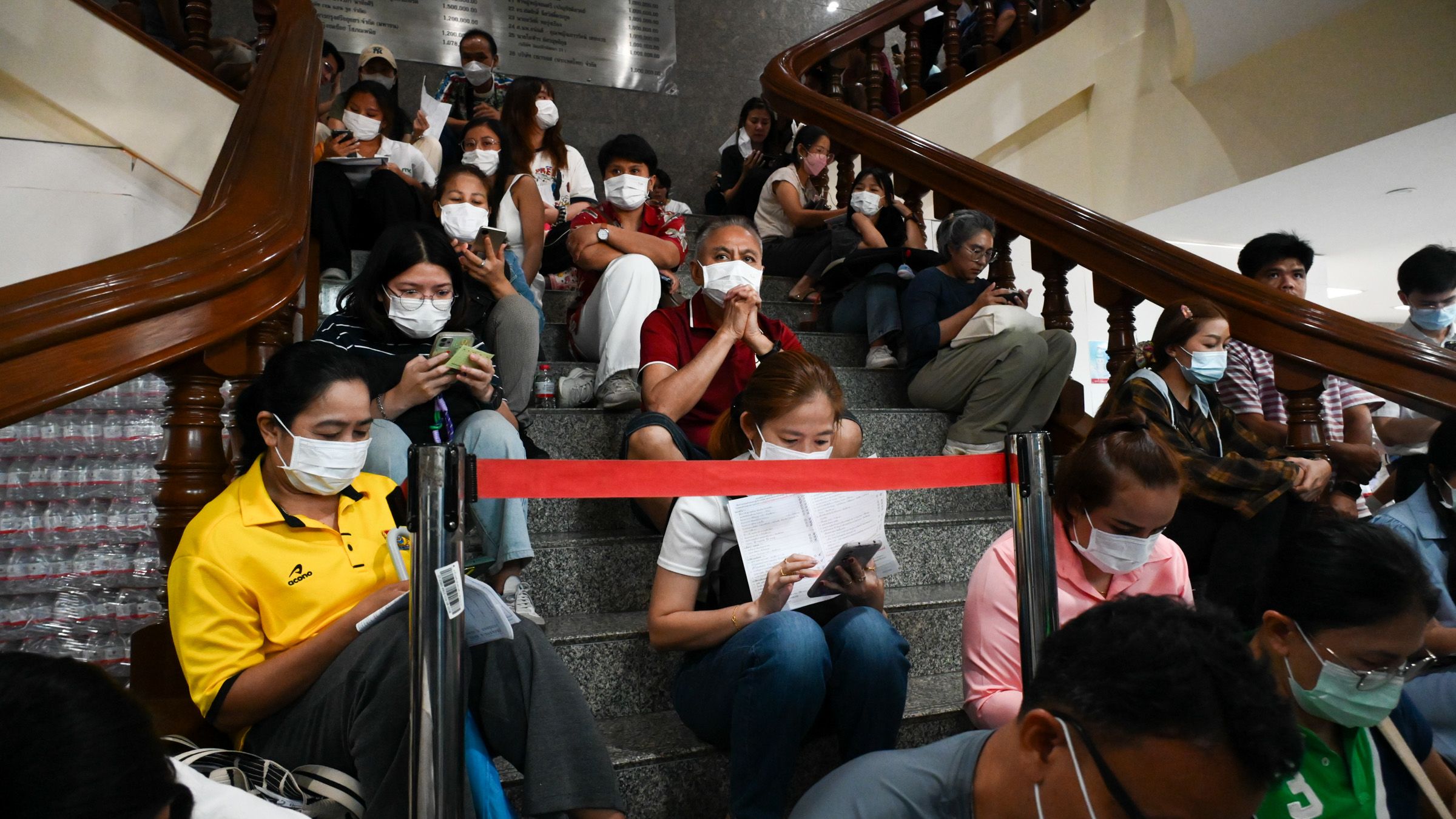 People wait at the Thai Red Cross in Bangkok on July 25 to donate blood for hospitals in the border regions near the conflict. (Photo by Suzu Takahashi)