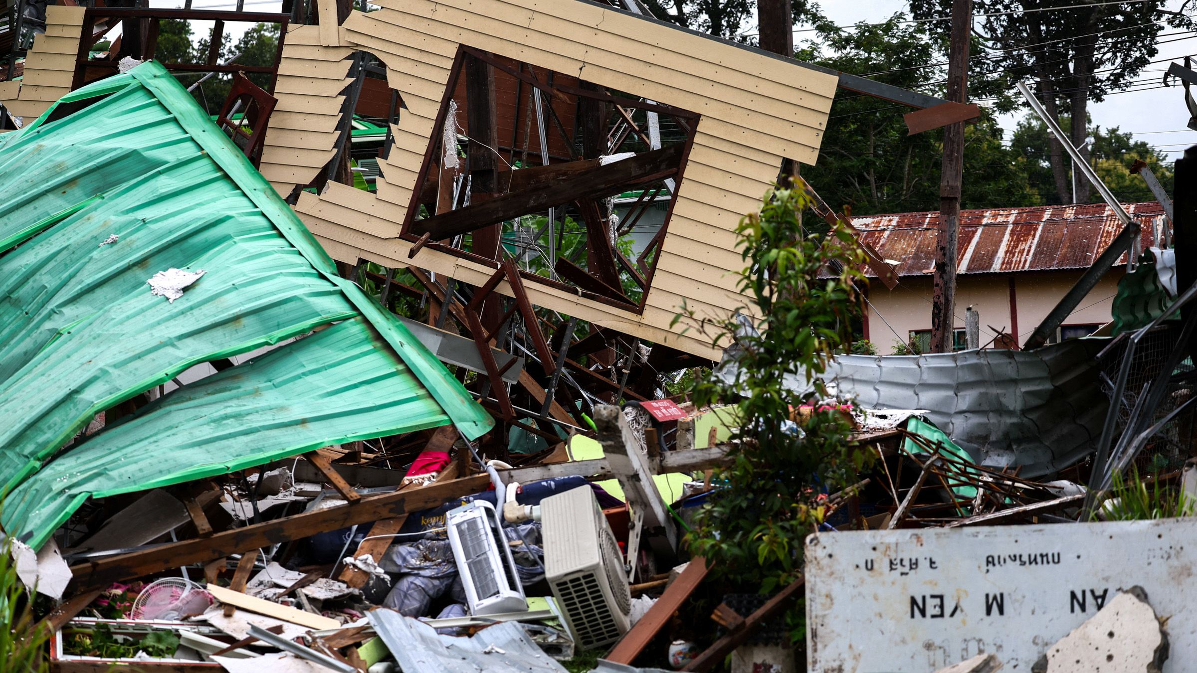 A house damaged by Cambodian shelling in Sisaket province, Thailand, pictured on July 28. (Photo by Athit Perawongmetha/Reuters)
